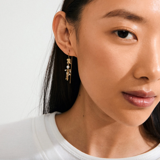 Kjedeøreringene har et delikat gullbelegg som gir en subtil glans, og vedhengene tilfører et dynamisk element til designet. Gullbelegget bidrar til å forhindre misfarging og gir smykket en varig kvalitet, mens vedhengene skaper bevegelse og interesse. Dette gir en kombinasjon av stil og funksjonalitet som passer til ulike anledninger, samtidig som det fremhever bærerens personlige stil.