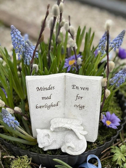 Mindebog - Kat er en søt gravpynt til katt. Den lille figuren kan brukes som en enkel og rolig detalj ved et minnested.