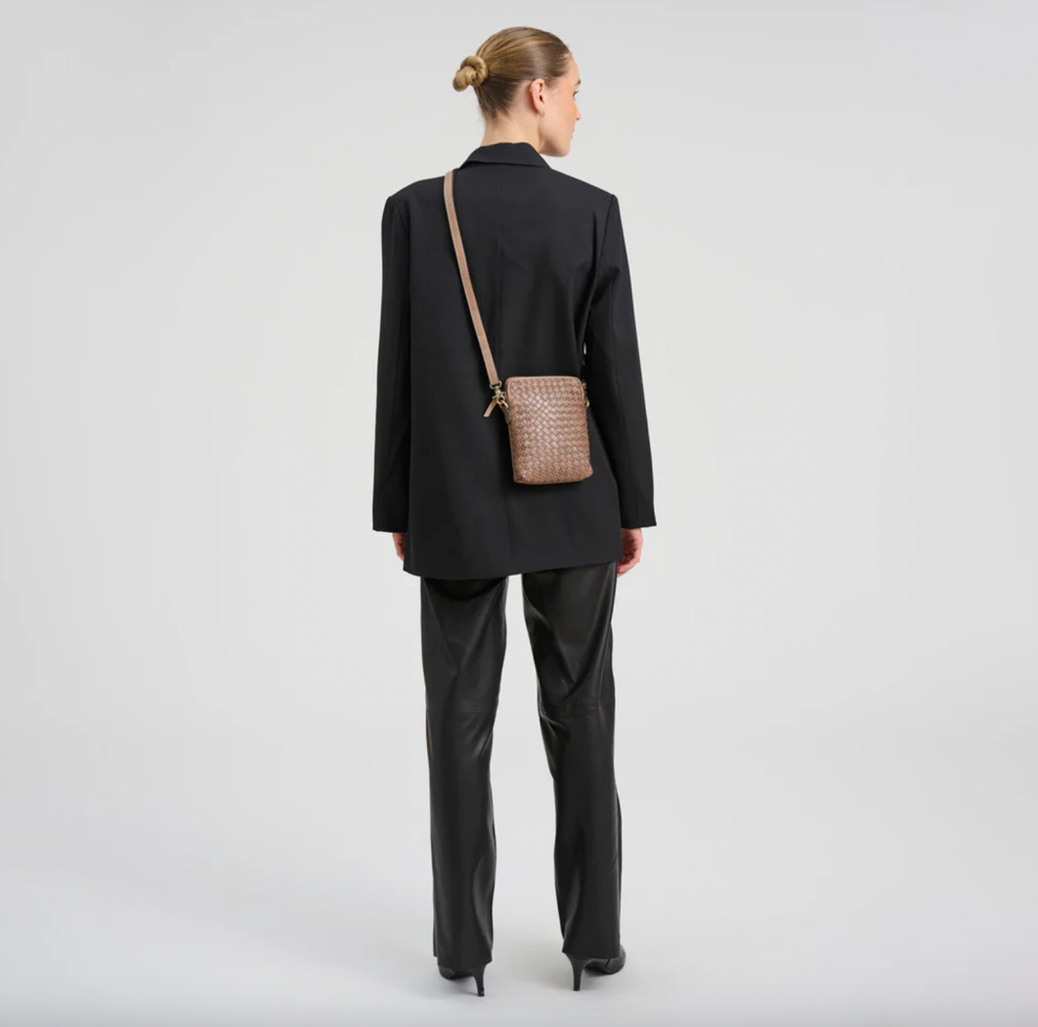 - Lang, avtagbar og justerbar crossbody-rem er inkludert