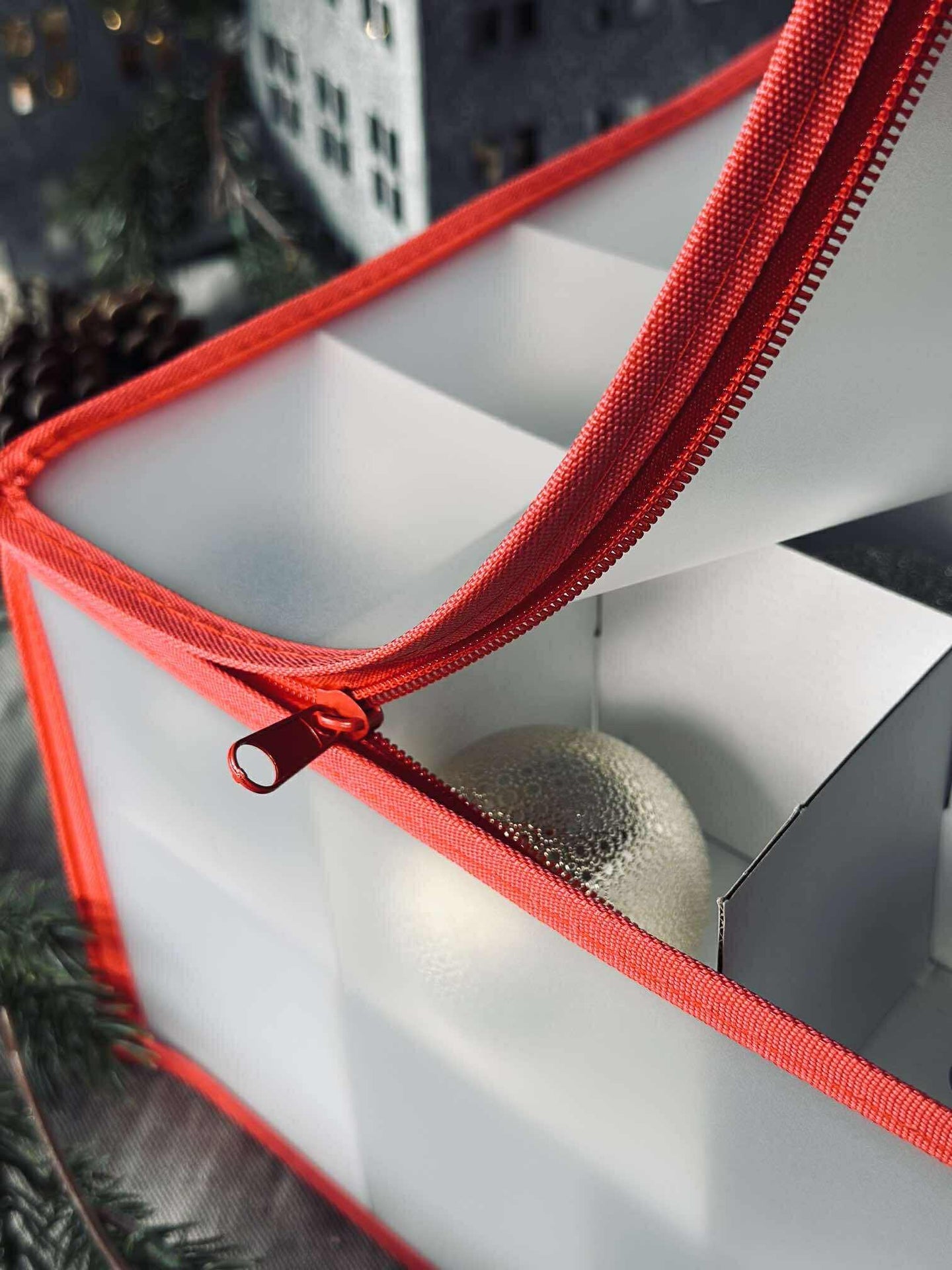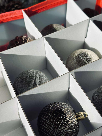 Er du lei av at julekuler blir skadet eller rotete lagret? Oppbevaringsløsningen vår gir en enkel måte å holde dem trygge og organiserte på. Det lett tilgjengelige og praktiske designet sikrer at hver kule har sin faste plass, uten bekymring for skader.