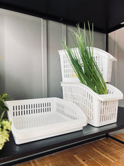 Kurven er ideell for å organisere både grønnsaker og drikkevarer på en praktisk måte. Med sitt design gir den enkel tilgang og oversikt, noe som gjør det lett å holde orden på kjøkkenet. Den kan plasseres slik at innholdet er lett tilgjengelig, noe som bidrar til en mer effektiv matlagingsprosess og sparer tid i en travel hverdag.