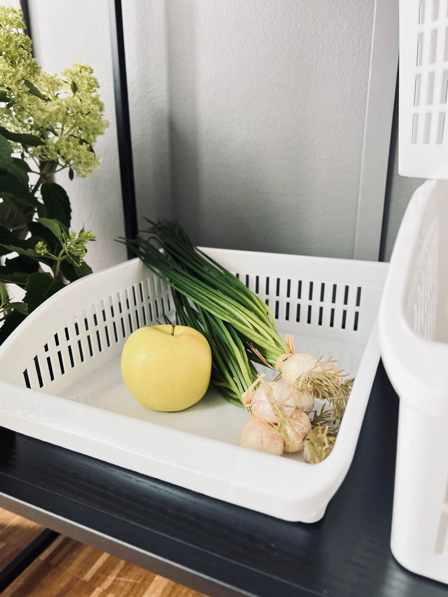 - Kurven er perfekt for oppbevaring av grønnsaker og drikkevarer
