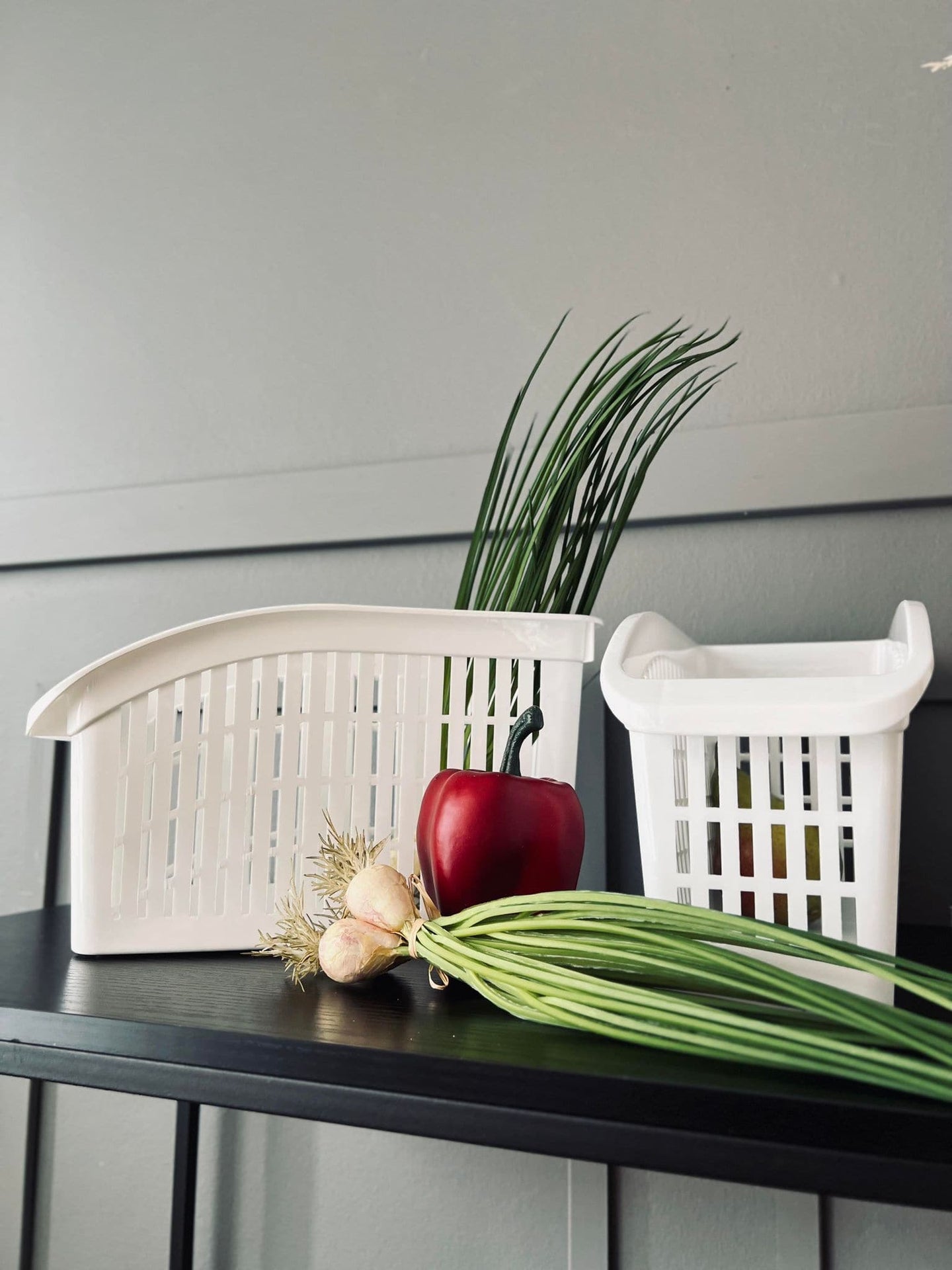 - Kurven er perfekt for oppbevaring av grønnsaker og drikkevarer