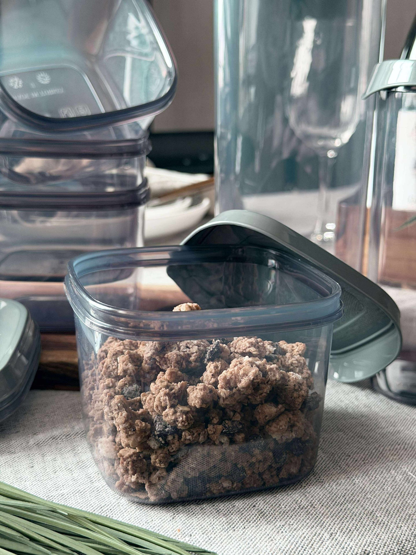 Våre plastbokser er laget av slitesterk plast som gir langvarig oppbevaring for dine kjøkkenvarer. Selv om de ikke tåler oppvaskmaskin, kan de enkelt rengjøres for hånd, noe som gir deg bedre kontroll over vaskemetoden og sikrer at boksene beholder sin form og funksjon over tid. Denne egenskapen kan også redusere risikoen for skader som kan oppstå i en oppvaskmaskin.