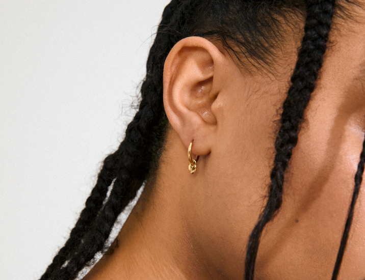 - Øreringene er laget av 99 % gjenvunnet materiale