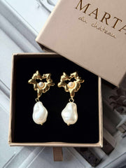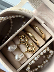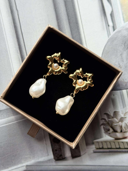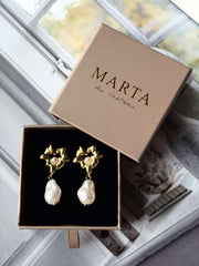 Øreringene er belagt med 18 karat gull, noe som gir dem en varig glans og en subtil luksus. Denne gullbelegningen bidrar til å beskytte mot slitasje, samtidig som den gir et tidløst preg. Det gjør også at perlene kommer til sin rett og skaper en balanse mellom det moderne og det klassiske i din daglige stil.