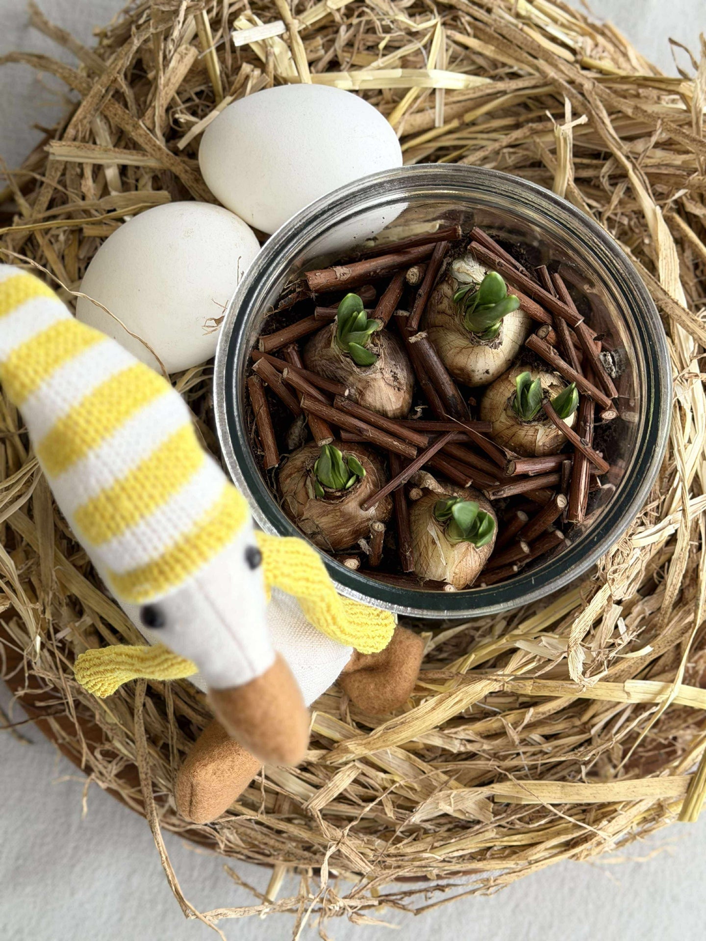 - Høyden på den lille påskedekorasjonen er 15 cm