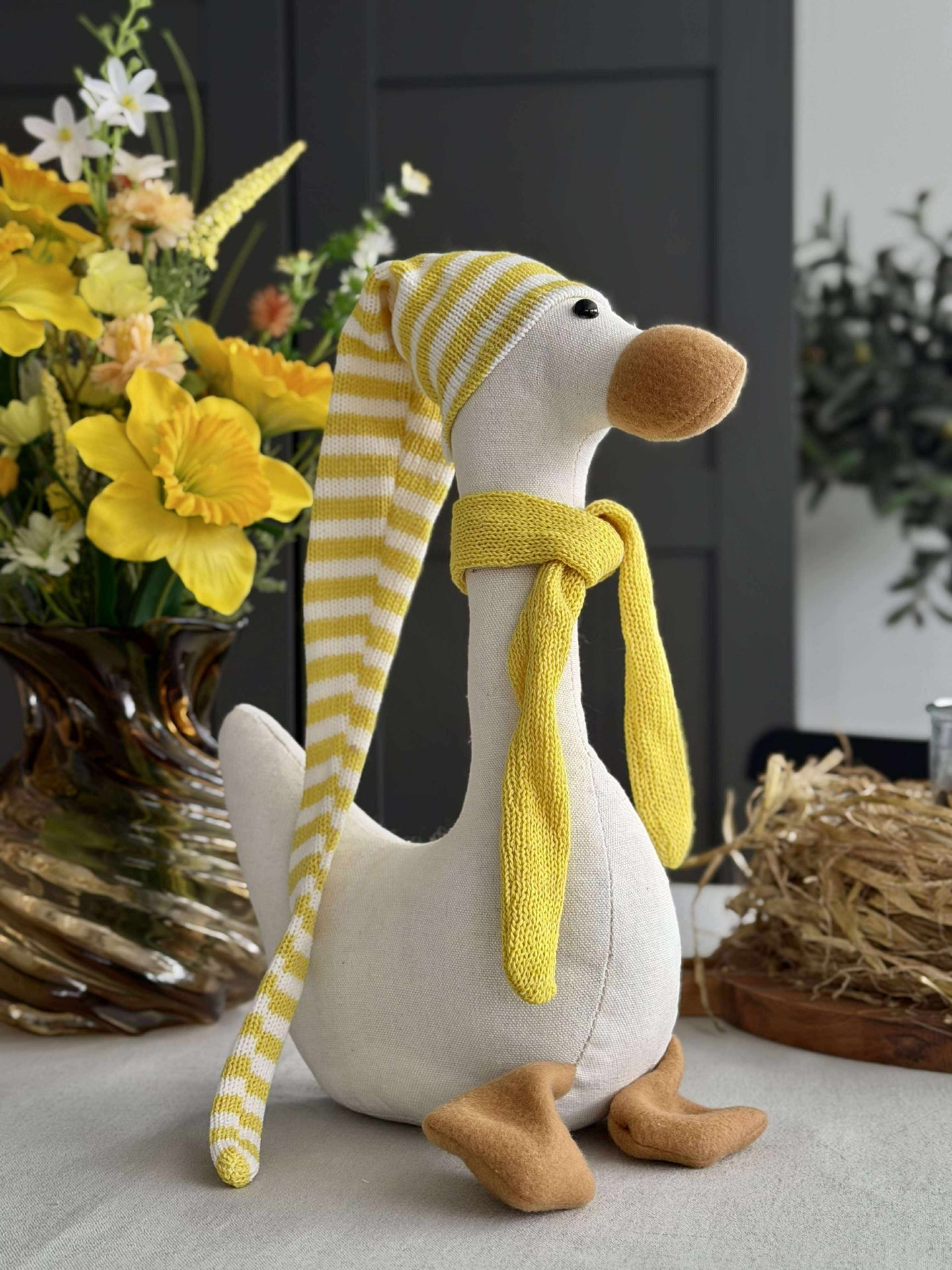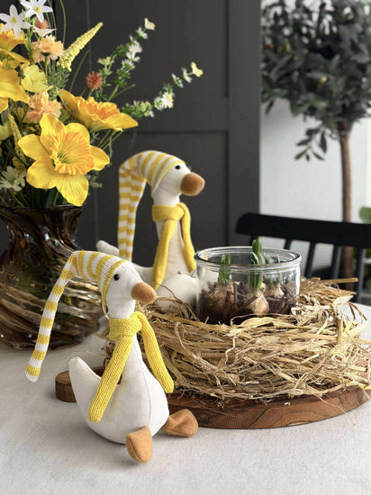 Utforsk påskens sjarm med en dekorativ påskeand med lue. Den er ideell for å tilføre personlighet og glede til hjemmet ditt i påskehøytiden. Med flere størrelser tilgjengelig kan du enkelt finne den som passer best for din stil og plass.