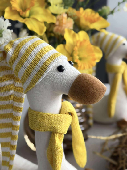 La denne sjarmerende påskeanden med lue bli en del av din påskefeiring. Forestill deg hvordan den kan tilføre liv og farger til hjemmet ditt, skape en varm atmosfære og få både store og små til å smile. Velg din favorittstørrelse og gjør påsken uforglemmelig.