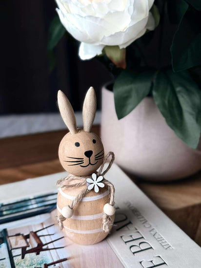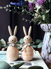 Forny hjemmet ditt med et snev av naturlig sjarm. Disse påskeharene i tre gir en subtil variasjon til påskepynten, med sine to tilgjengelige størrelser. De gir en enkel måte å tilføre liv og en liten overraskelse til interiøret.