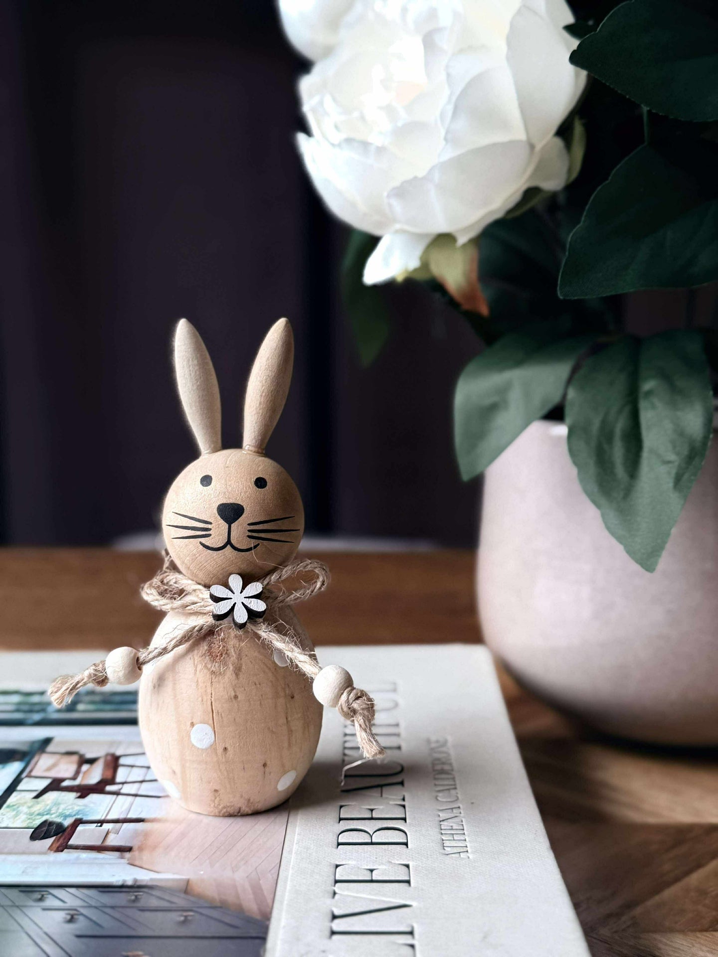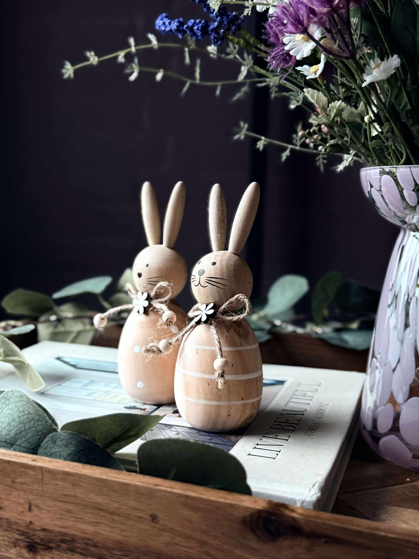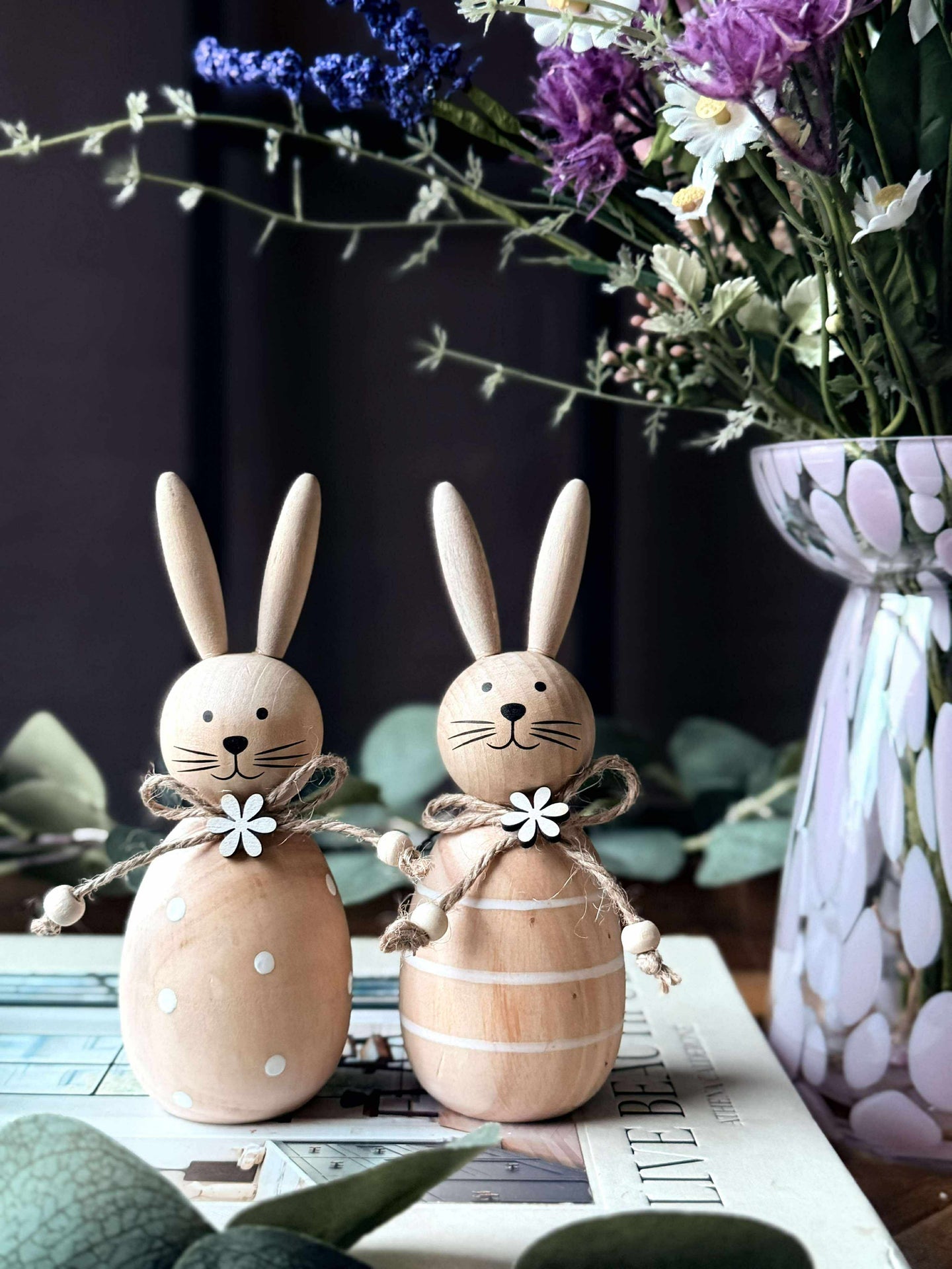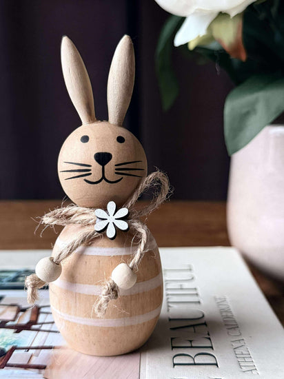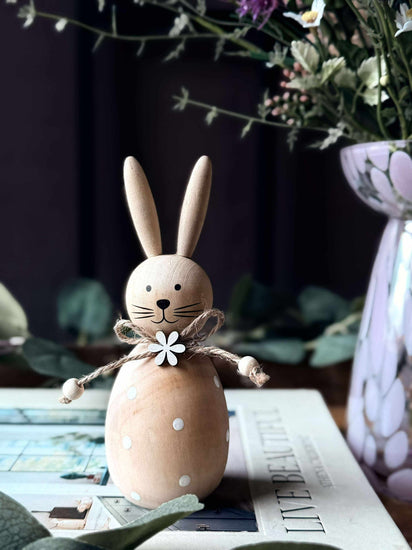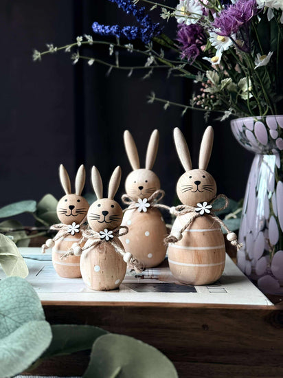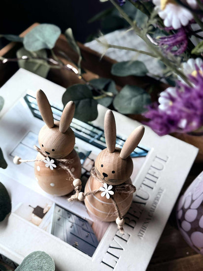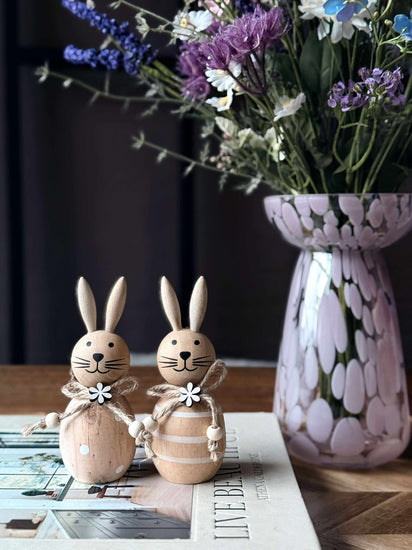 La disse sjarmerende treharene bli en del av din påsketradisjon. Perfekte for å skape en varm og innbydende atmosfære, gir de en naturlig eleganse til ethvert rom. Tenk deg gleden ved å oppdage disse små detaljene som hever helhetsinntrykket av hjemmet ditt.