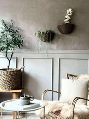 Plantekurven er foret med plast, noe som gir flere praktiske fordeler. Foringen bidrar til å holde fuktigheten inne i kurven, noe som er gunstig for plantenes vekst. Det forhindrer også at jord og vann lekker ut, noe som beskytter overflatene i hjemmet ditt. I tillegg gjør denne funksjonen det enklere å rengjøre kurven, slik at den forblir i god stand over tid.