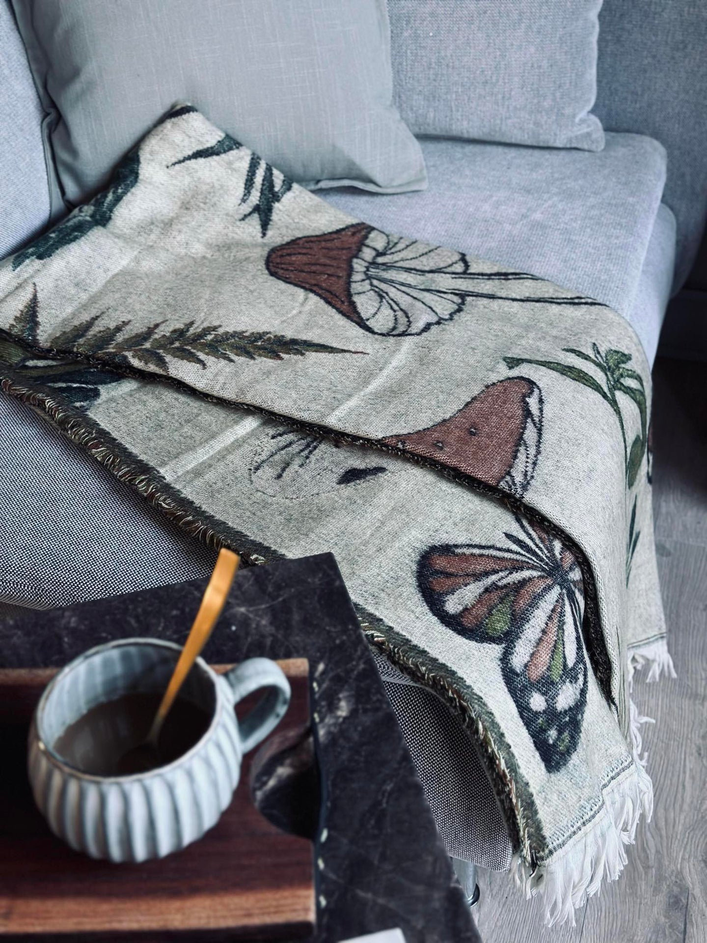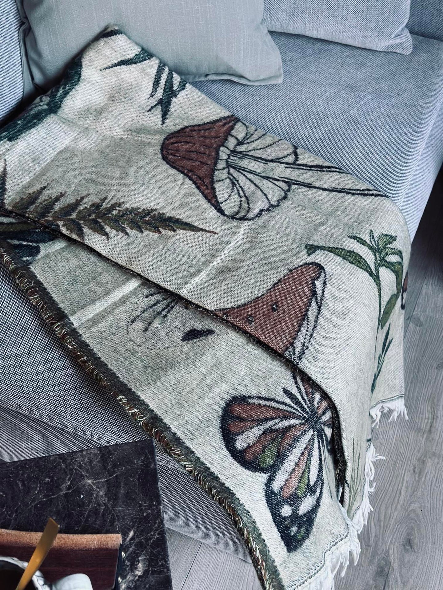 Pledd - Mushroom grønn / natur