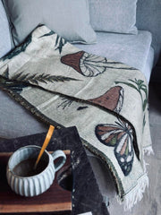 Pledd - Mushroom grønn / natur er et deilig pledd med trykk og mange flotte detaljer. Den grønne og naturfargede uttrykket gir et rolig, dekorativt uttrykk som er lett å kombinere med både lyse og mørke nyanser i innredningen.