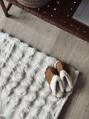 Gulvteppe Plys - 60x90 Hvit er et plys gulvteppe med en deilig myk overflate og et enkelt, lyst uttrykk. Den hvite fargen gjør det enkelt å skape en rolig base i interiøret, mens den myke plysen gir en behagelig følelse under føttene.
