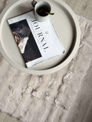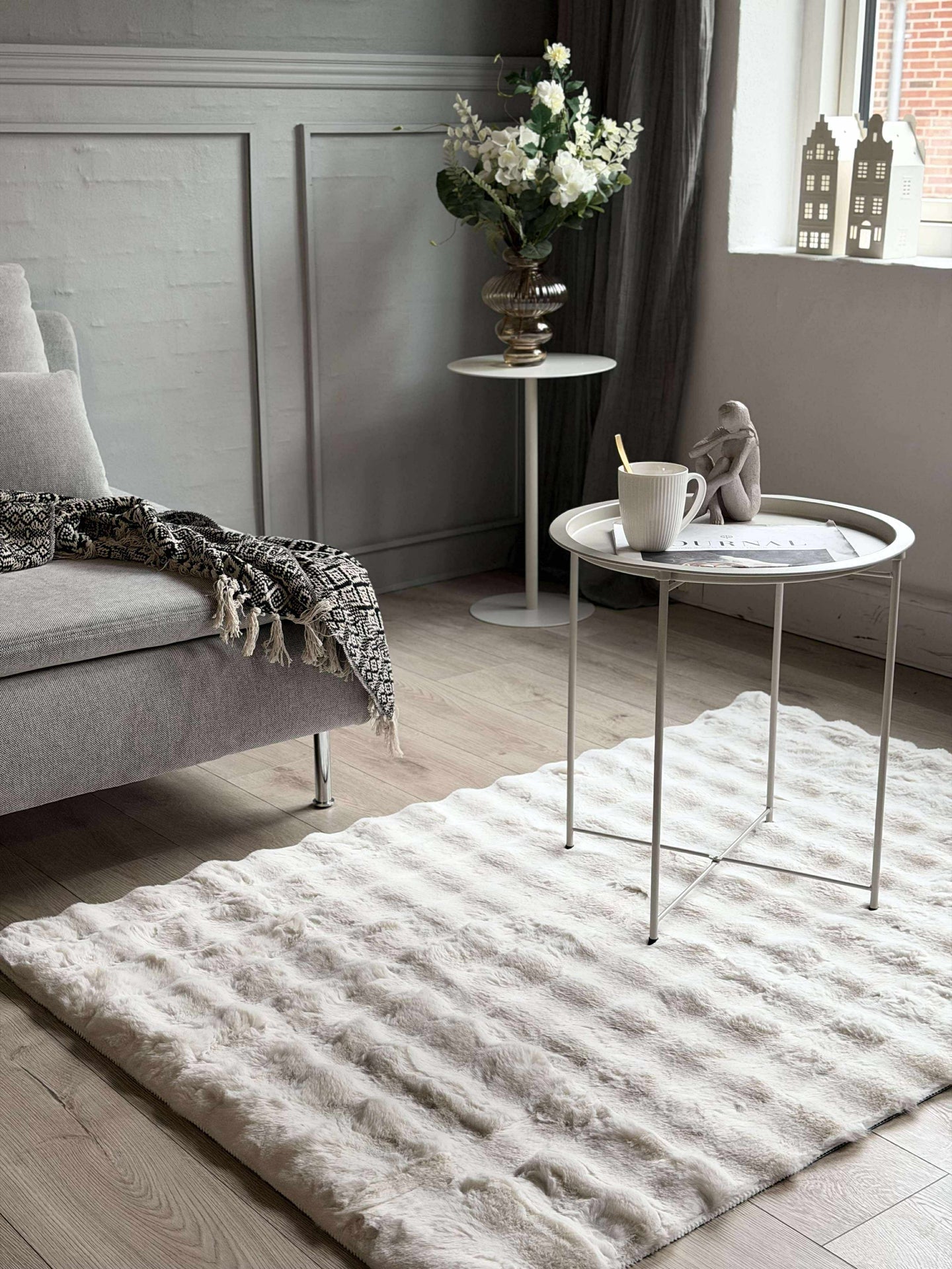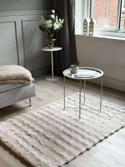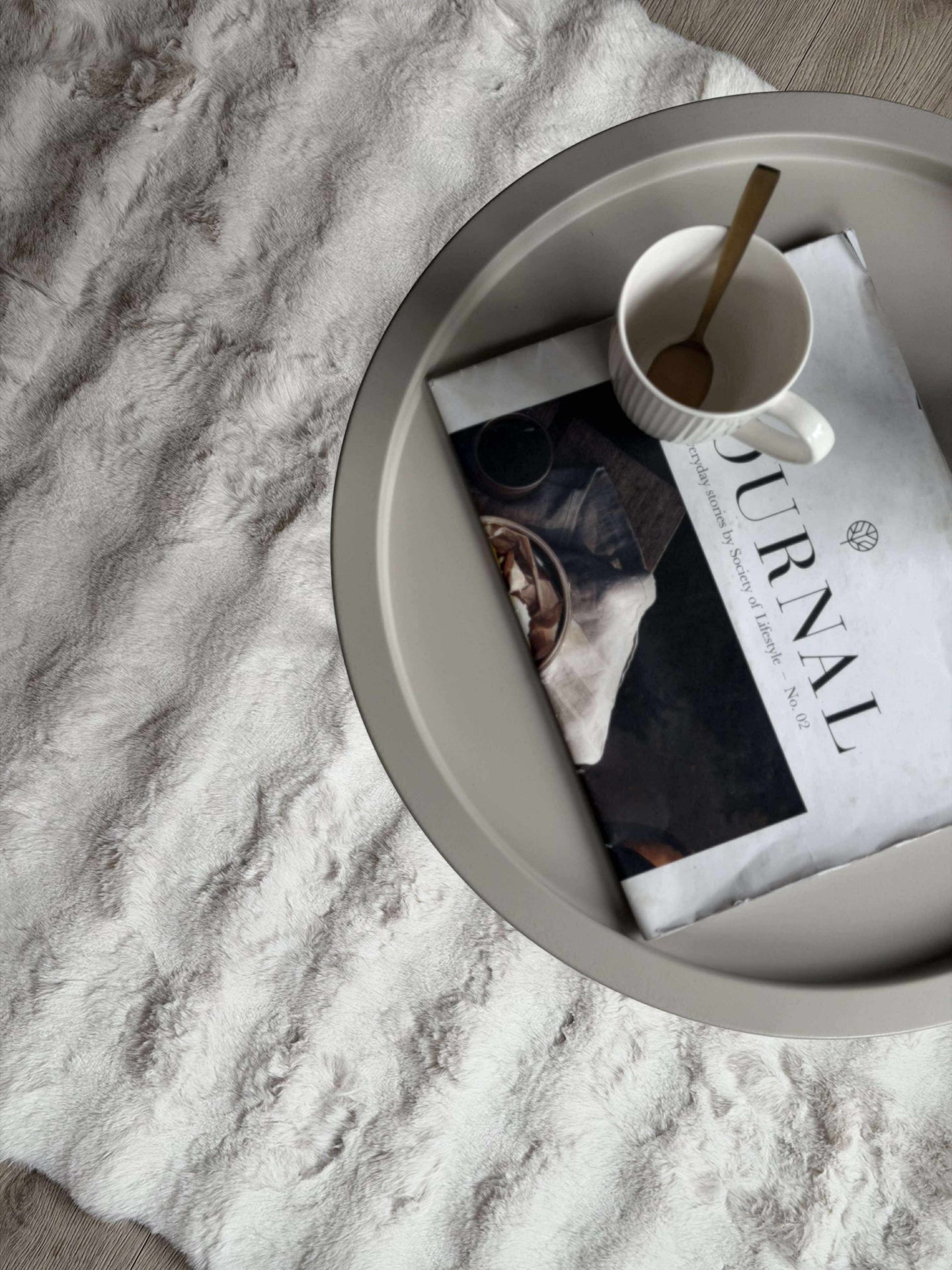 Overflaten i plys har en myk tekstilfølelse, og polyestermaterialet gjør teppet lett å bruke i hverdagen. Siden fargen leveres assortert, kan uttrykket variere fra teppe til teppe.