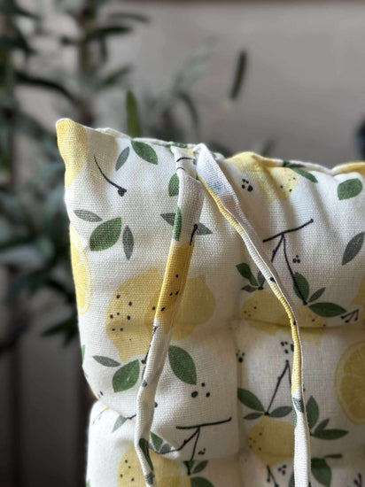 Se for deg å synke ned i sofaen etter en lang dag, omgitt av friske sitrontoner som hever humøret ditt. Denne puten med fyll gir ikke bare støtte, men også en følelse av fornyelse til rommet ditt. Opplev hvordan små detaljer kan gjøre en stor forskjell.