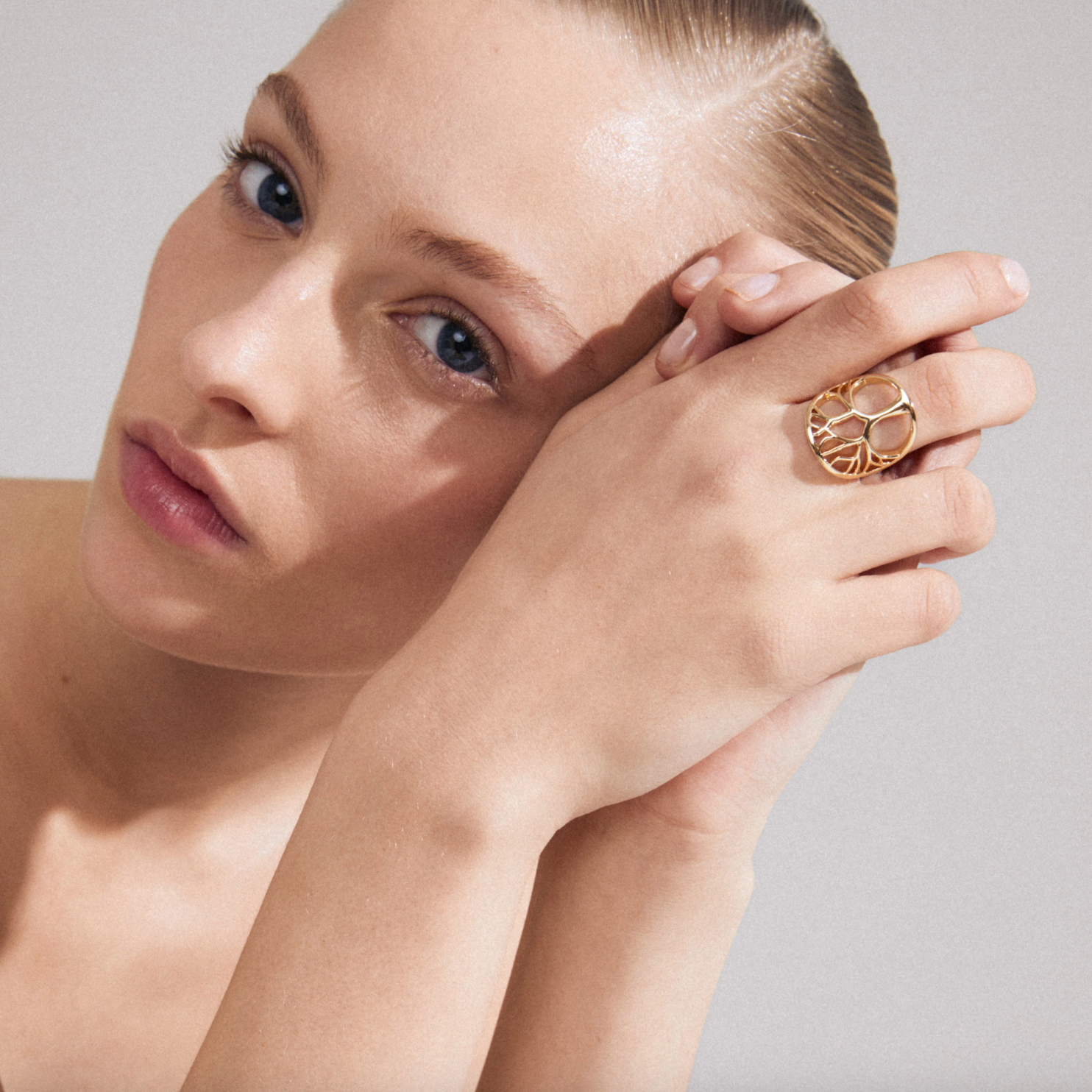 Den gullbelagte ALIA-ringen kombinerer estetikk med bærekraft ved å være laget av 99 % gjenvunnet materiale. Dette gir ikke bare en visuell appell, men bidrar også til en mer miljøvennlig livsstil. Ringen er et symbol på moderne ansvar og bevissthet, og gir brukeren en følelse av å være en del av en større, bærekraftig bevegelse.