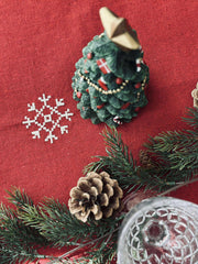 Juleduken med broderi er laget av resirkulert bomull, noe som gir den en miljøvennlig profil. Bruken av resirkulert materiale bidrar til redusert avfall og mindre belastning på naturressurser. Dette materialvalget gir også en myk og behagelig tekstur, samtidig som det opprettholder en robusthet som passer til sesongens mange sammenkomster.