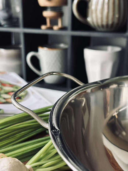 Skålen er laget av rustfritt stål, som gir en rekke fordeler. Materialet er motstandsdyktig mot flekker og riper, noe som sikrer et langvarig og rent utseende. Rustfritt stål er også hygienisk, da det ikke absorberer lukt eller smak fra matvarer. Dette gjør skålen til et praktisk valg for både daglig bruk og spesielle anledninger.