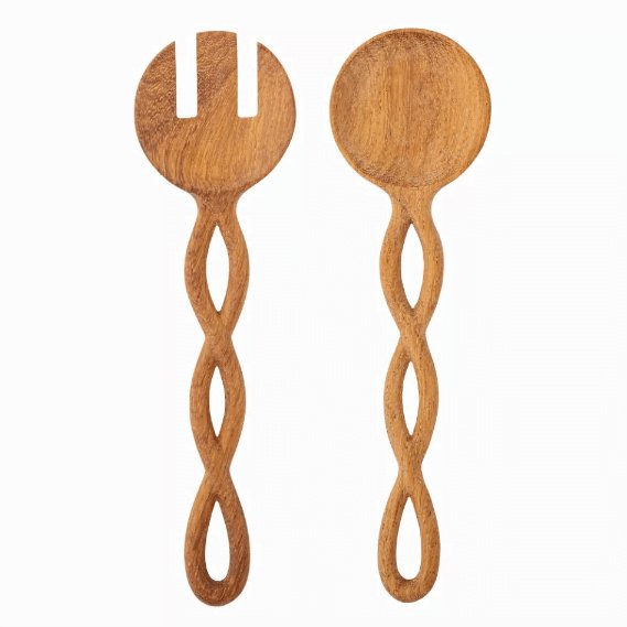 La din neste salatservering skinne med dette håndskårne salatbestikket. Legg til en personlig touch på borddekkingen din og imponer gjestene dine med en rustikk og særegen stil. Gjør måltidet ditt ekstra spesielt med dette vakre bestikket!