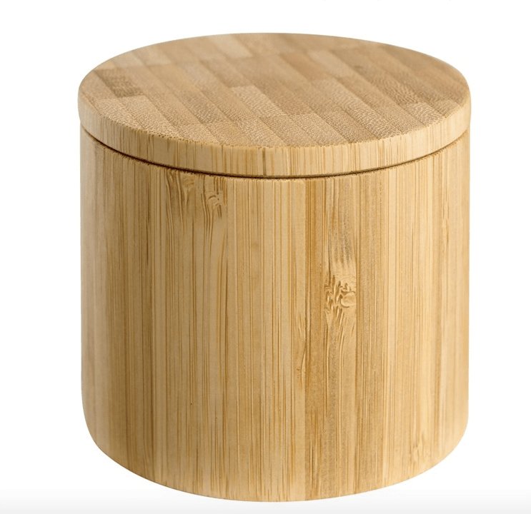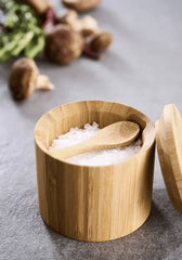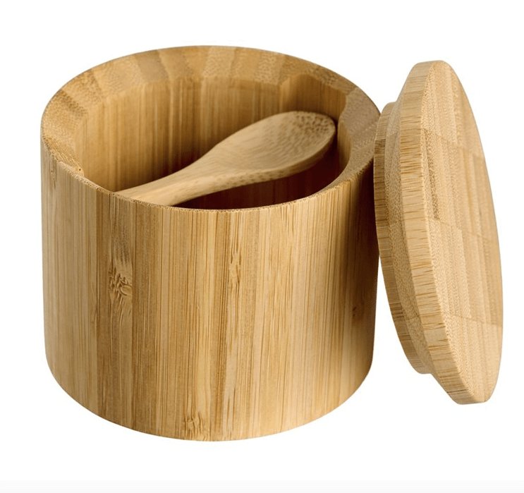 Saltkar med skje i bambus