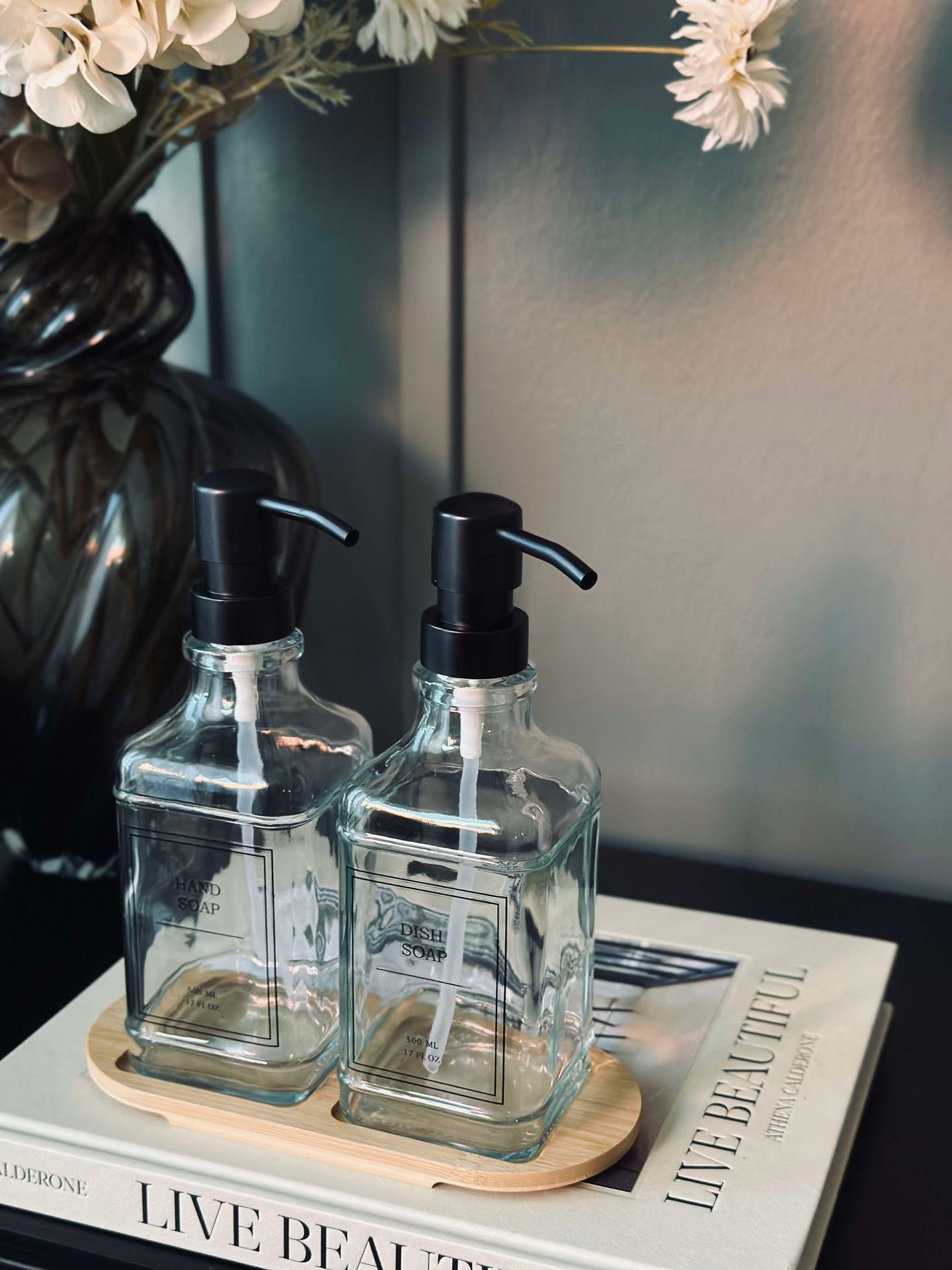 - Såpedispensersettet inkluderer to dispensere og en bakke
