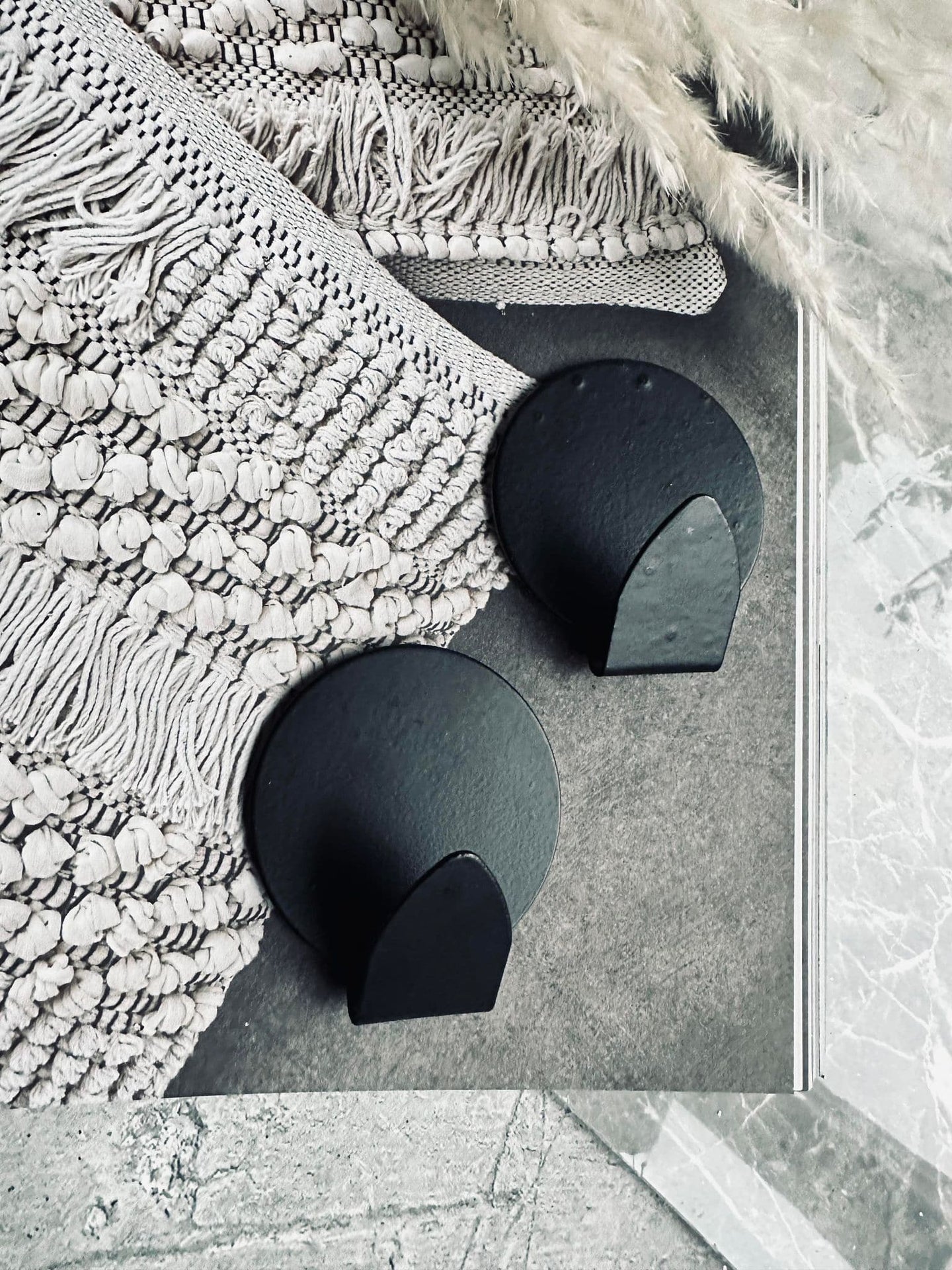 Knaggsettet er laget av svart metall, noe som gir det et moderne og stilrent utseende, samtidig som det er slitesterkt og motstandsdyktig mot fuktighet. Det svarte metallet tilfører en tidløs eleganse til baderommet, og det solide materialet sikrer at knaggene tåler daglig bruk uten å miste sin funksjonalitet eller estetiske appell.