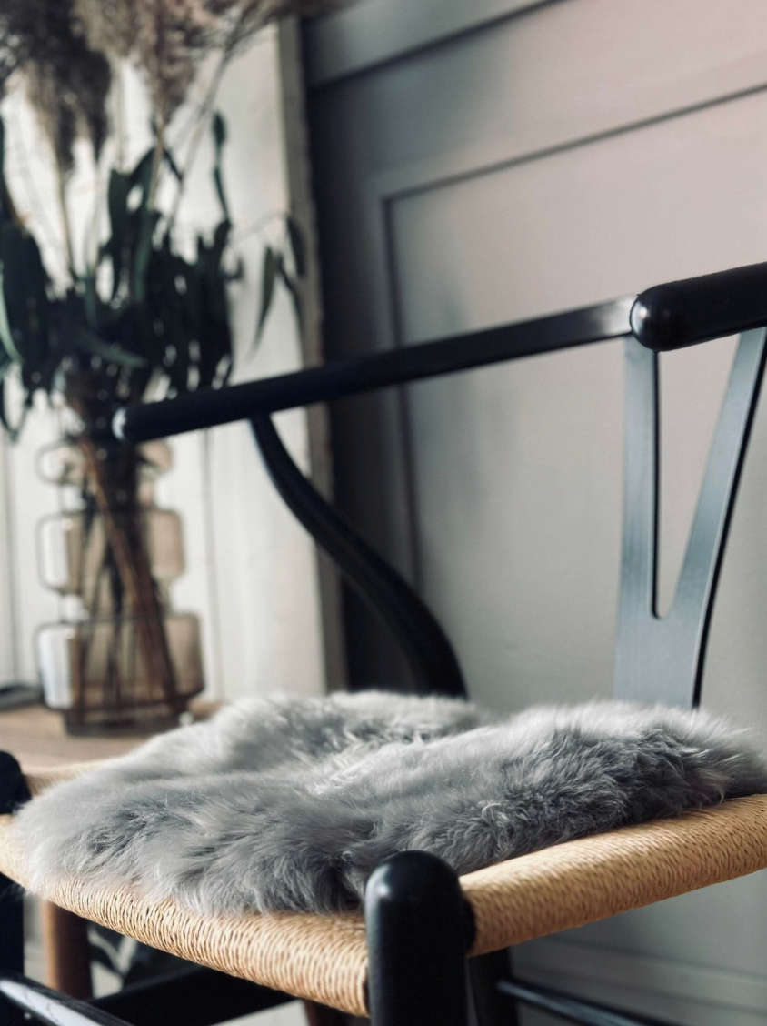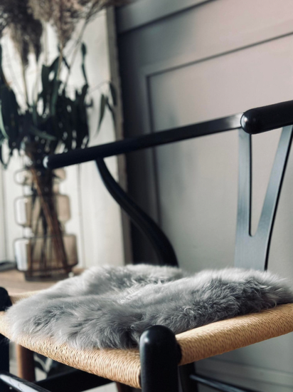 Dette seteskinnet i ekte lammeskinn i grått (lammeskinn grå) er en enkel måte å tilføre ekstra komfort til spisestolen. Den runde formen og den grå fargen gir et rolig, naturlig uttrykk som passer godt inn i mange typer boliginnredning. Skinnet er farget og har en deilig, myk kvalitet.