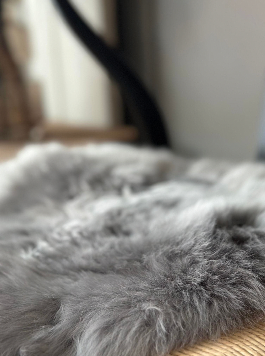 Seteskinn Ø 34 cm - Grå lammeskinn