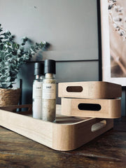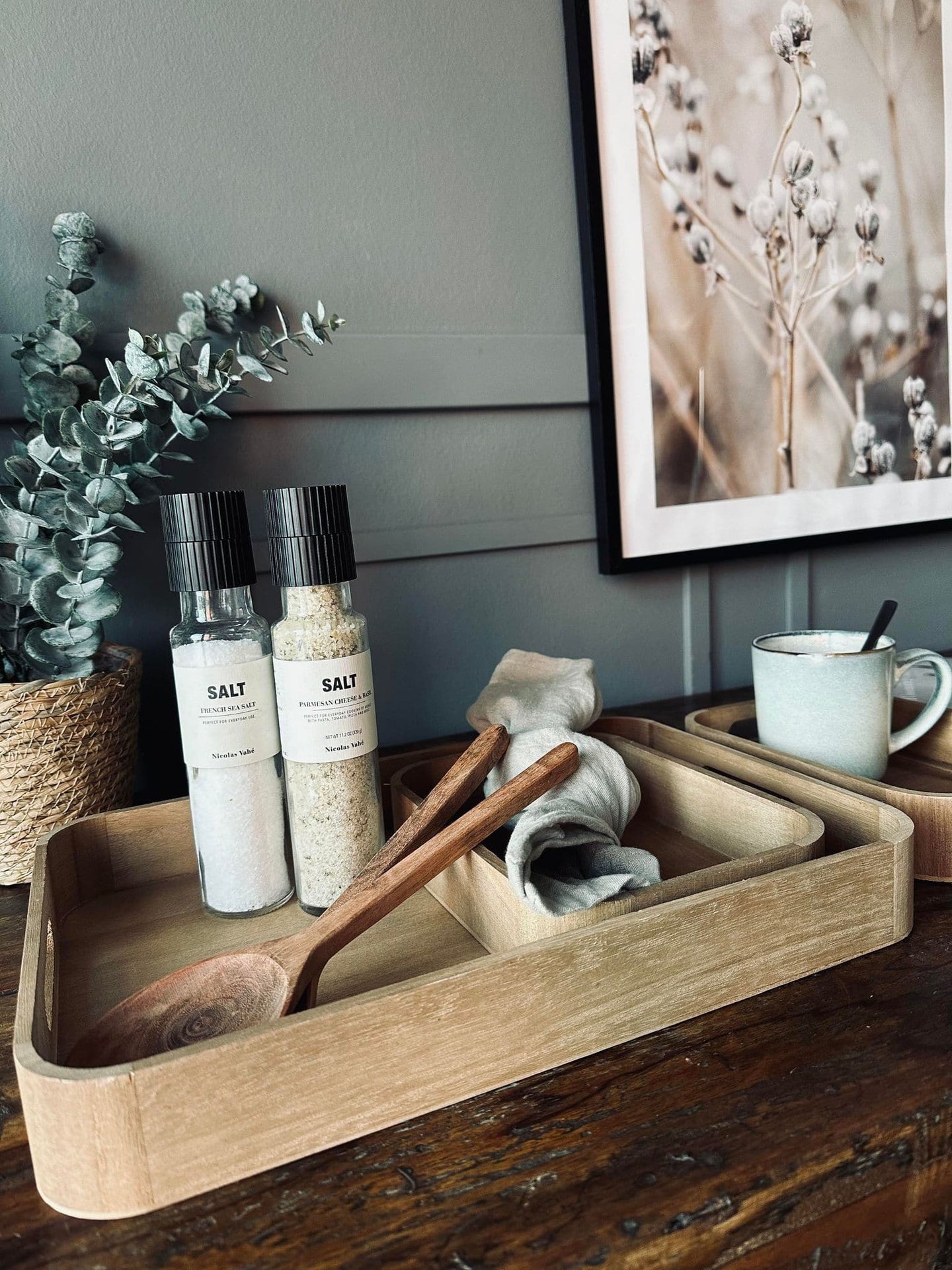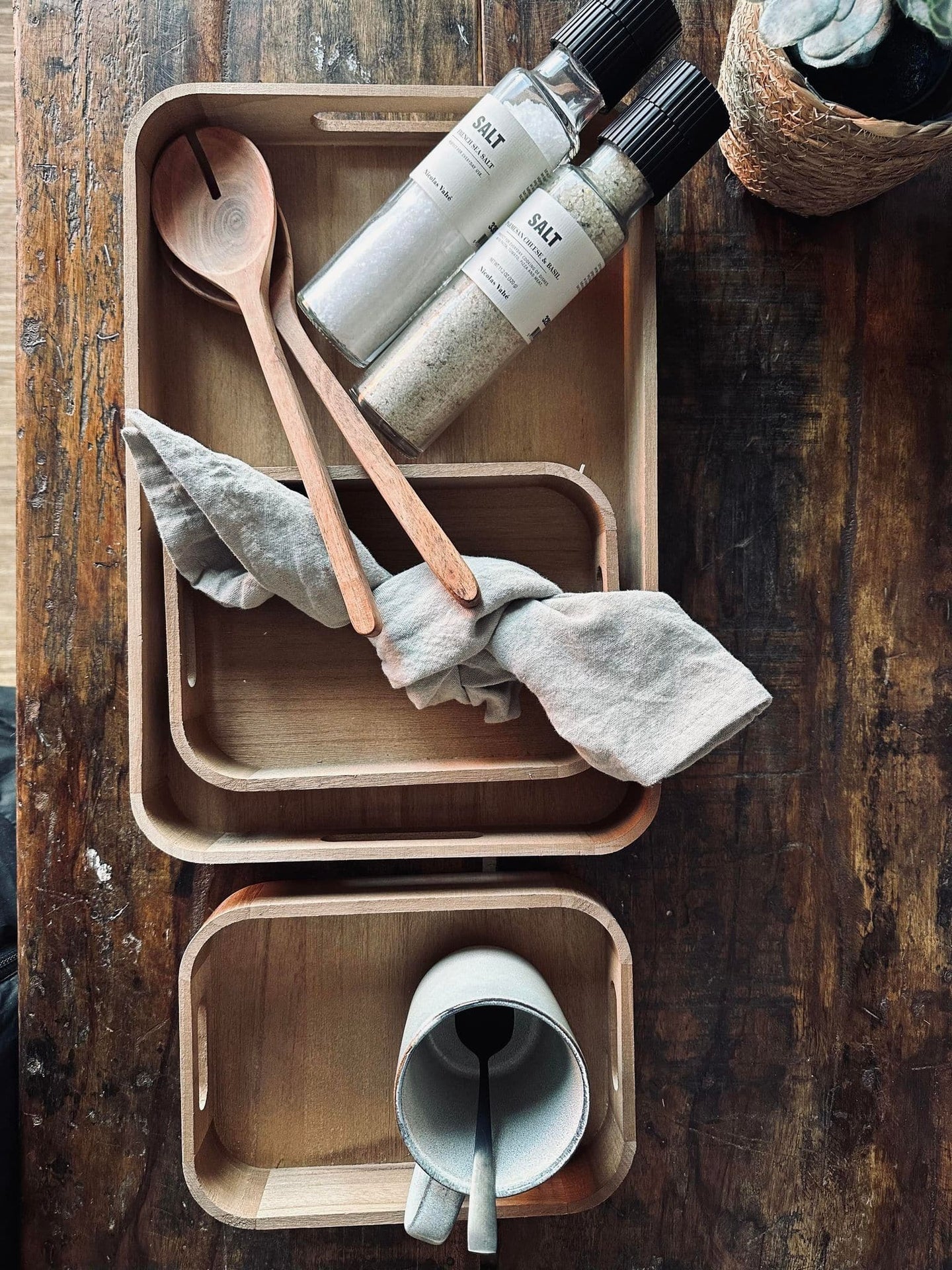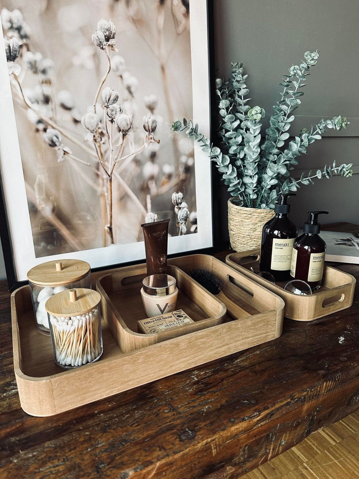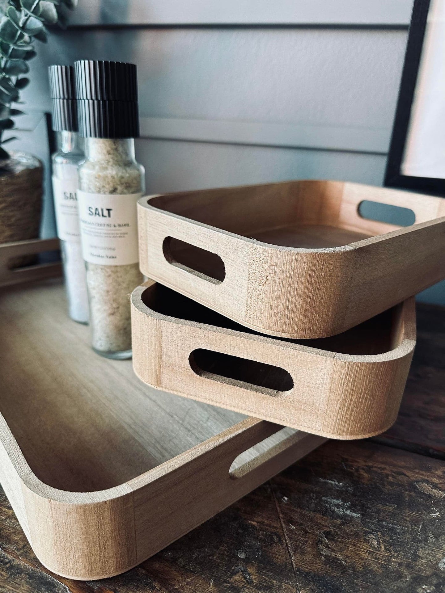 Når du trenger en enkel løsning for organisering eller dekorasjon, kan dette settet med trebrett være svaret. Med både større og mindre brett kan de brukes til å strukturere og legge til et naturlig preg i ethvert rom.