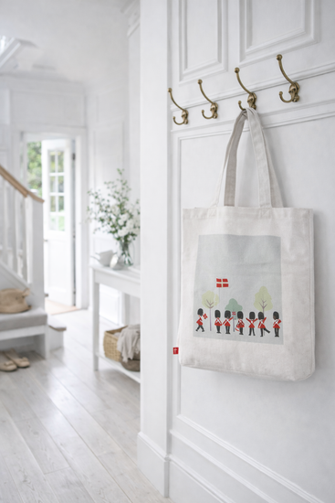 Shopper - Dannebrog er en superfin canvas-shopper i naturfarge med trykk. Den fungerer både som en praktisk handlepose og som en enkel gavepose, når du vil pakke en gave litt annerledes inn.