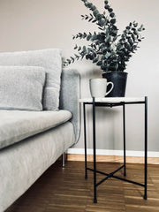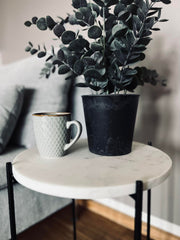 Bordplaten er laget av ekte marmor, noe som gir en robust og varig overflate. Marmoren tilfører en naturlig skjønnhet og et snev av luksus til rommet. Hver marmorplate har sitt eget særpreg, noe som gir sidetabellen en distinkt karakter. Den glatte overflaten er enkel å rengjøre, noe som gjør den praktisk i daglig bruk.