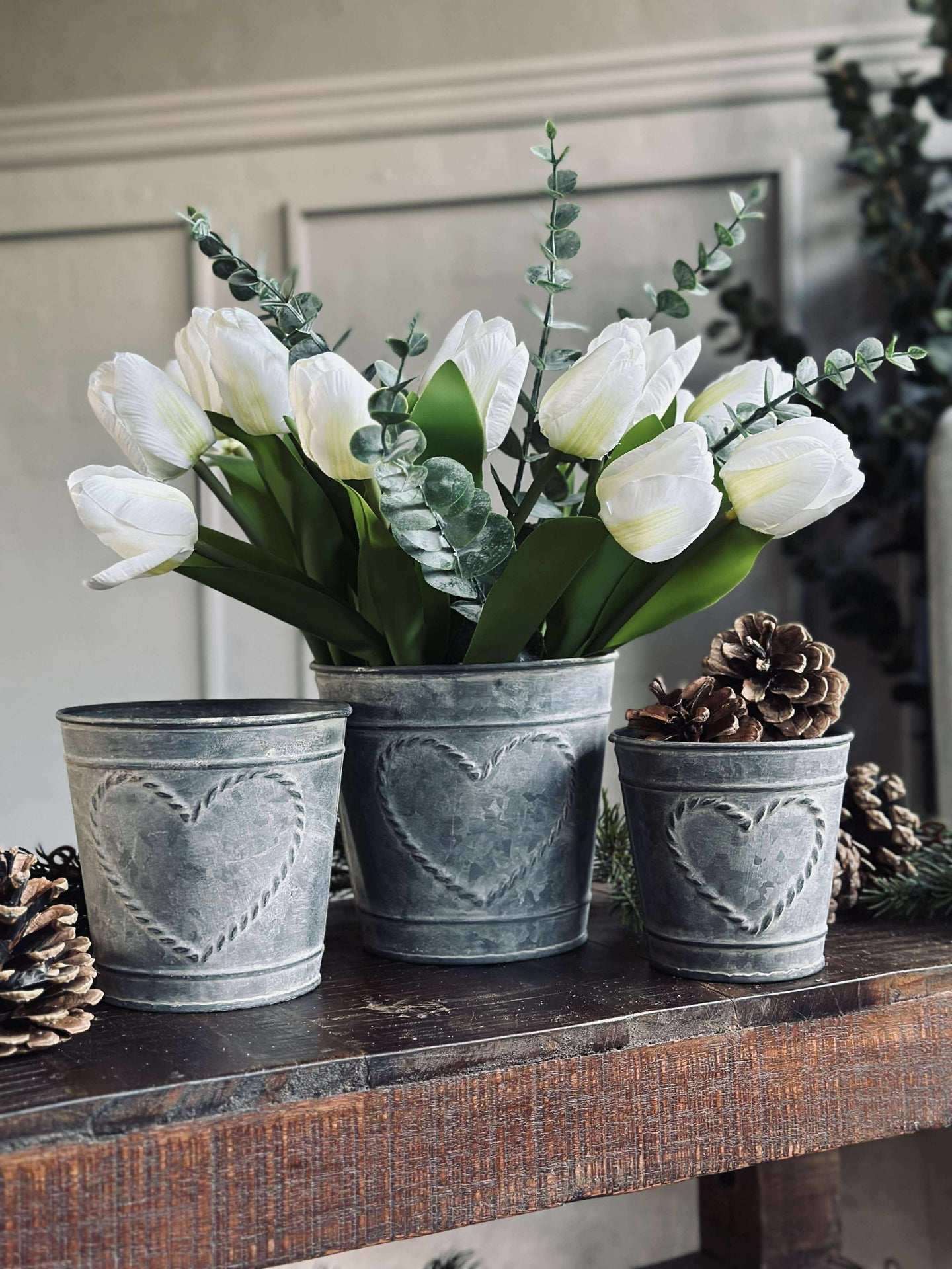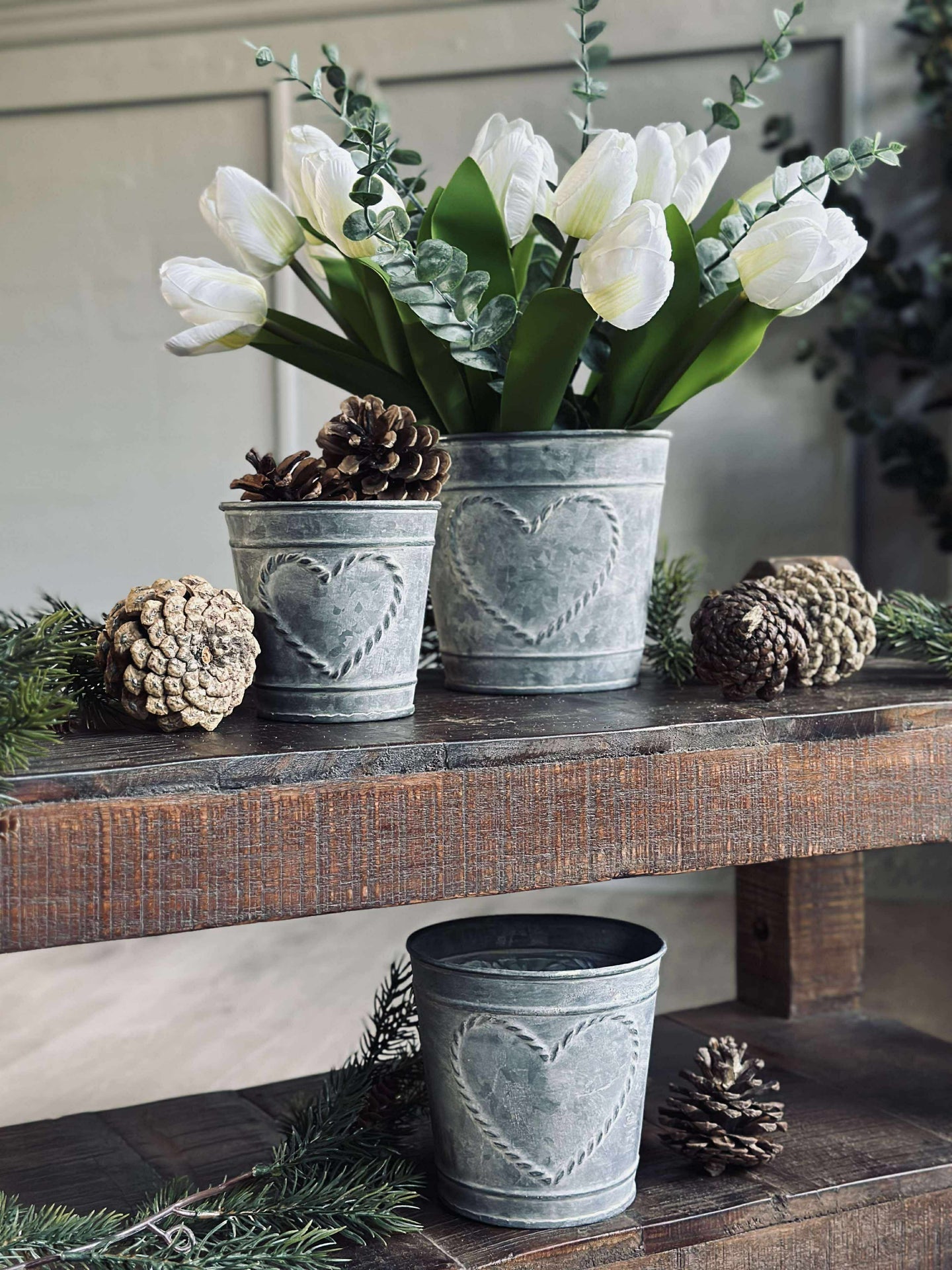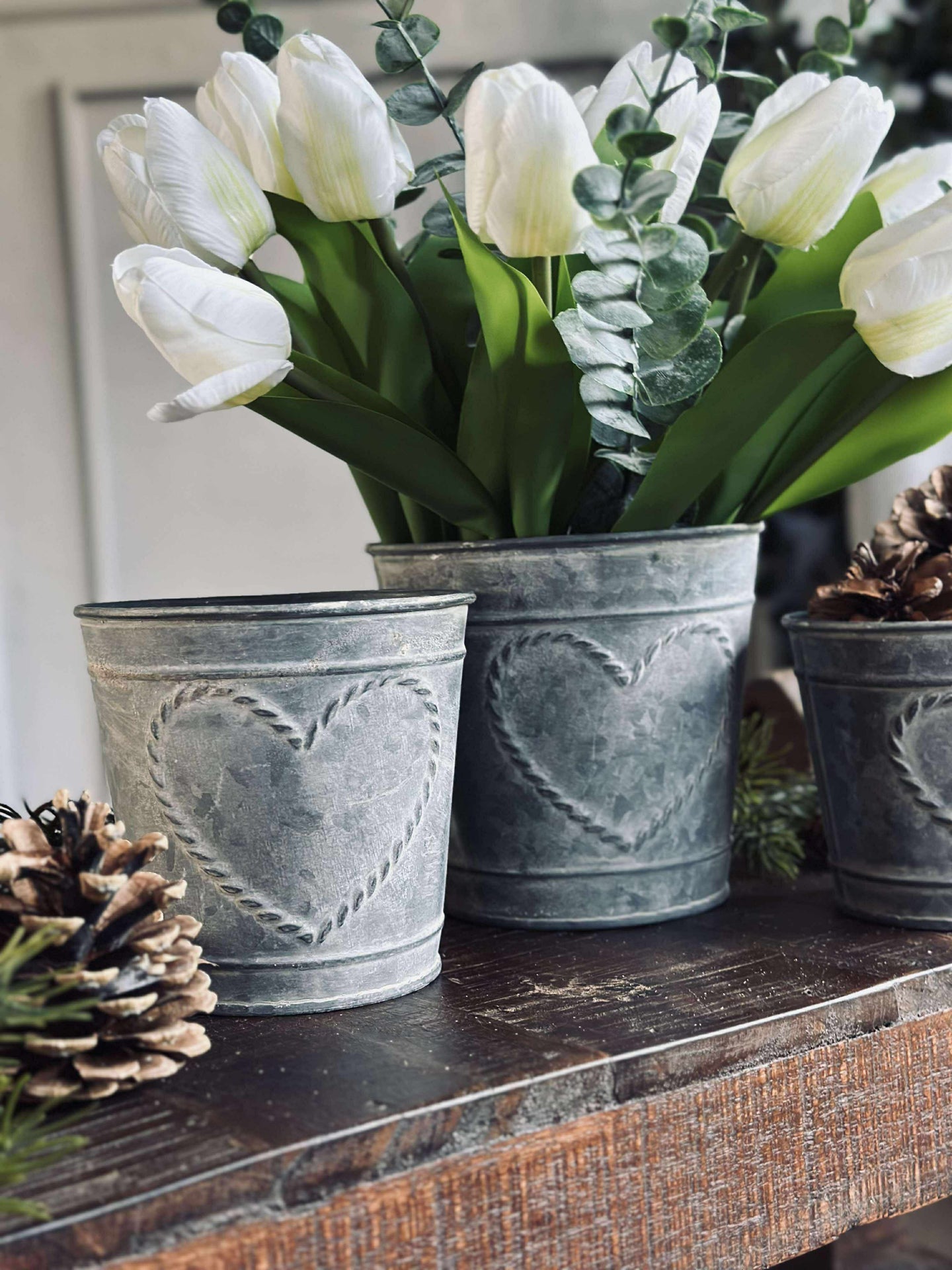Plantespandene er laget av ekte sink, noe som gir dem en naturlig motstandsdyktighet mot vær og vind. Dette materialet bidrar til langvarig holdbarhet, noe som gjør at de kan brukes både innendørs og utendørs. Sinkens naturlige egenskaper sørger også for at planter får et stabilt og trygt miljø å vokse i, samtidig som det gir et stilrent og tidløst utseende.