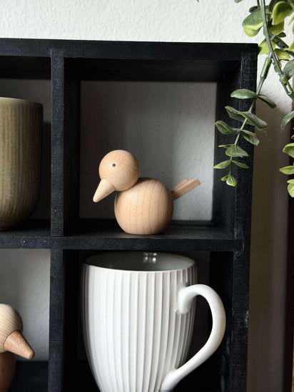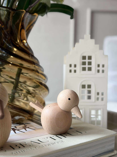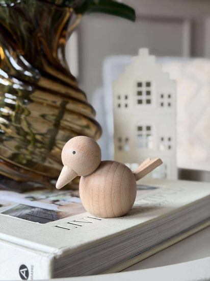 Er du lei av livløse hjørner i hjemmet? Denne delikate fuglefiguren tilfører en subtil sjarm og et naturlig preg til interiøret ditt. Laget av solid bøketre, er den en varig investering for dem som setter pris på tidløs, naturlig design.