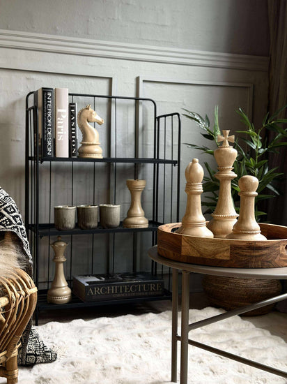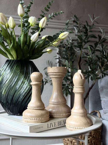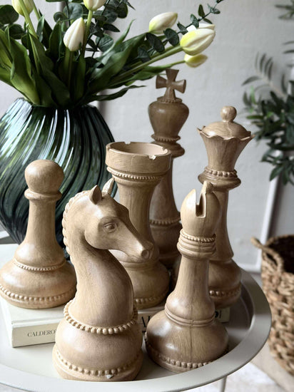 Trenger du et nytt element for å fylle rommet med en subtil sjarm? Oppdag et sett med dekorative sjakkbrikker som kombinerer tradisjon med moderne estetikk. Ideelt for å tilføre et snev av raffinement og interesse til interiøret ditt.