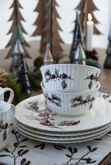 Juleskålene er laget av newbone-porselen, som gir en behagelig balanse mellom styrke og finesse. Dette materialet gjør skålene lette, samtidig som de er robuste og holdbare. Den glatte overflaten gir et delikat preg og gjør dem enkle å rengjøre, noe som er praktisk i en travel juletid. Skålene tåler både oppvaskmaskin og mikrobølgeovn, noe som gir fleksibilitet i hverdagen.