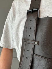 Opplev en mer ryddig og effektiv matlaging med skinnforkle i brun bøffellær. Beskytt klærne dine mot søl og rot, og nyt en problemfri kjøkkenopplevelse. La skinnforkle være din pålitelige følgesvenn på kjøkkenet!