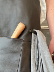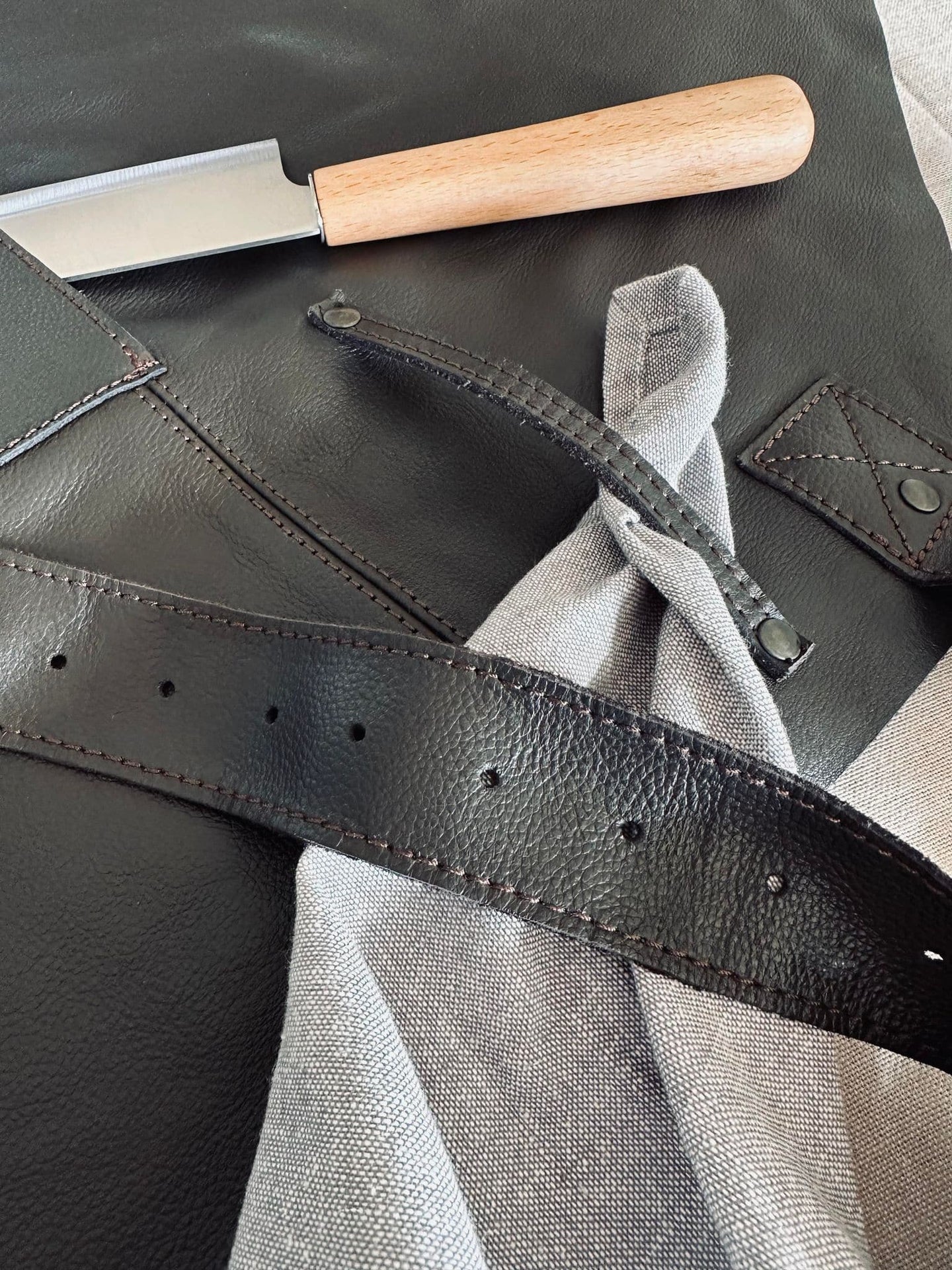 Skinnforkleet er laget av bøffellær, noe som gir det en robusthet som gjør det ideelt for daglig bruk på kjøkkenet. Bøffellæret gir en naturlig motstand mot flekker og skader, samtidig som det utvikler en vakker patina over tid. Den slitesterke kvaliteten gjør at forkleet beholder sin form og funksjon selv etter gjentatt bruk, noe som gir både praktisk og estetisk verdi.