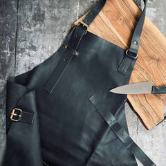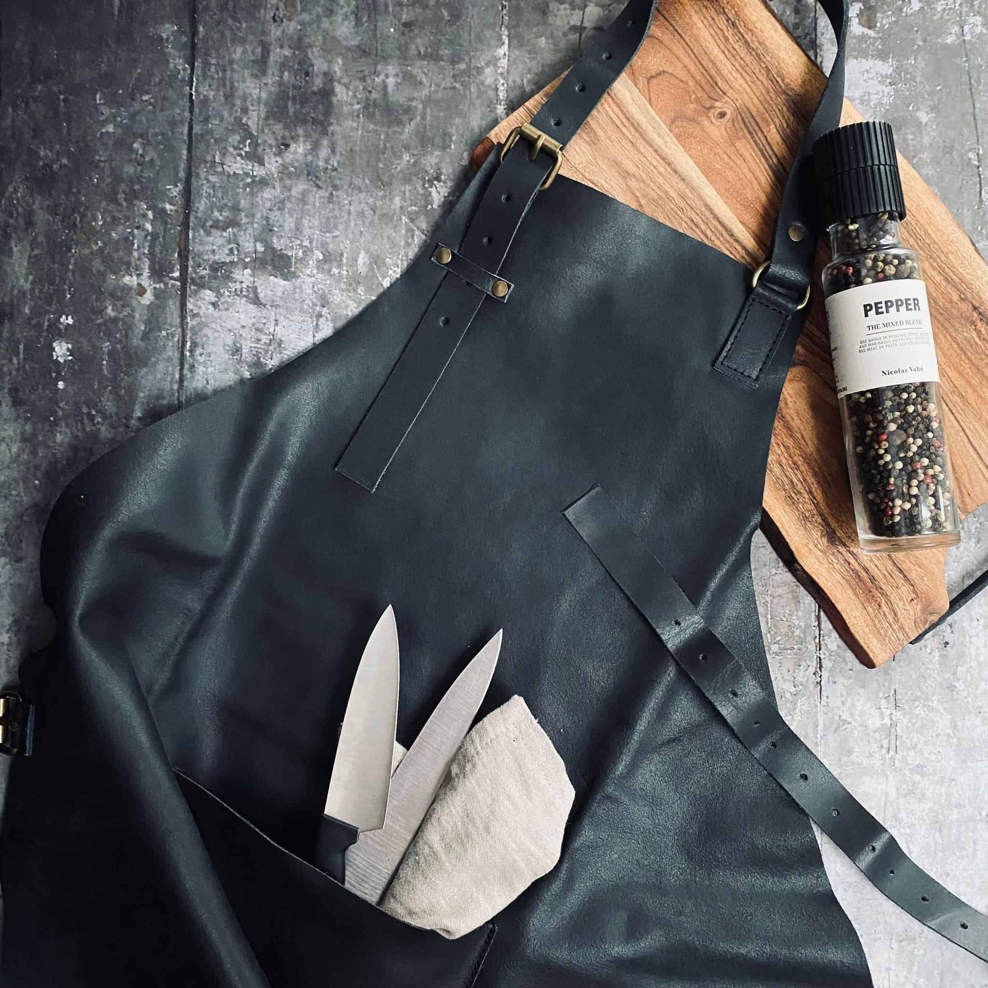 La matlagingen bli enklere og mer komfortabel med et skinnforkle i svart bøffellær. Slipp bekymringen for søl og ubehag, og fokuser på å skape deilige måltider med stil. Invester i et forkle som passer godt, og gjør matlagingen til en glede!