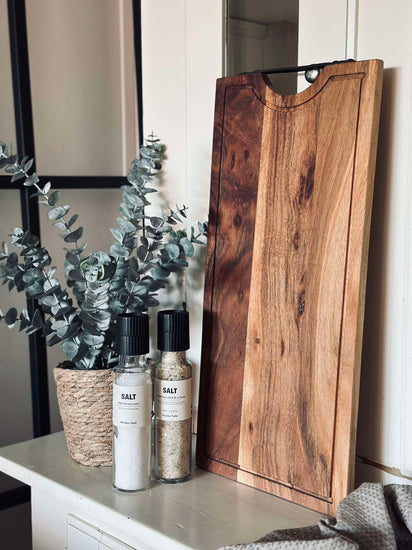 Skjærefjølen i akasietre gir en holdbar og naturlig overflate for alle typer kuttebehov. Akasietreets naturlige motstandsdyktighet mot fuktighet bidrar til å forlenge levetiden, samtidig som det gir et varmt og innbydende preg på kjøkkenet. Saftrillen rundt kanten fanger opp overflødig væske, noe som gjør rengjøringen enklere og arbeidsområdet mer hygienisk.
