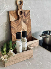 Skjærefjølen er laget av akasietre, som gir en solid og holdbar overflate for alle typer kutteoppgaver. Akasietre er kjent for sin naturlige motstand mot fuktighet, noe som bidrar til å bevare skjærefjølens utseende og funksjonalitet over tid. Den vakre trefiberen gir også et estetisk tiltalende uttrykk som passer inn i ethvert kjøkkenmiljø.