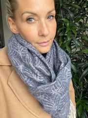 Skjerf Helena - Denim er et mykt skjerf i en blå denim-inspirert fargetone med en vevd struktur. Det er et enkelt, stilrent tilbehør, som gir et rolig uttrykk og er lett å kombinere med både hverdagsklær og yttertøy.