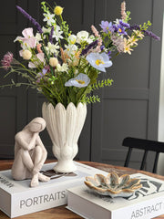 Vase flower er en keramisk vase i hvit, som også kan brukes som skjuler. Det enkle, hvite uttrykket gir et rolig og nøytralt uttrykk som er lett å kombinere med resten av innredningen din.