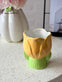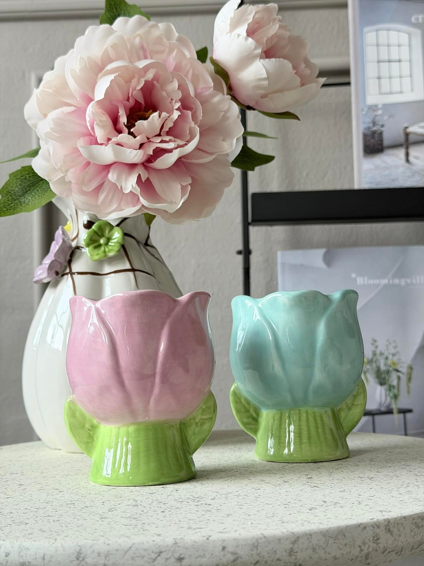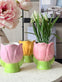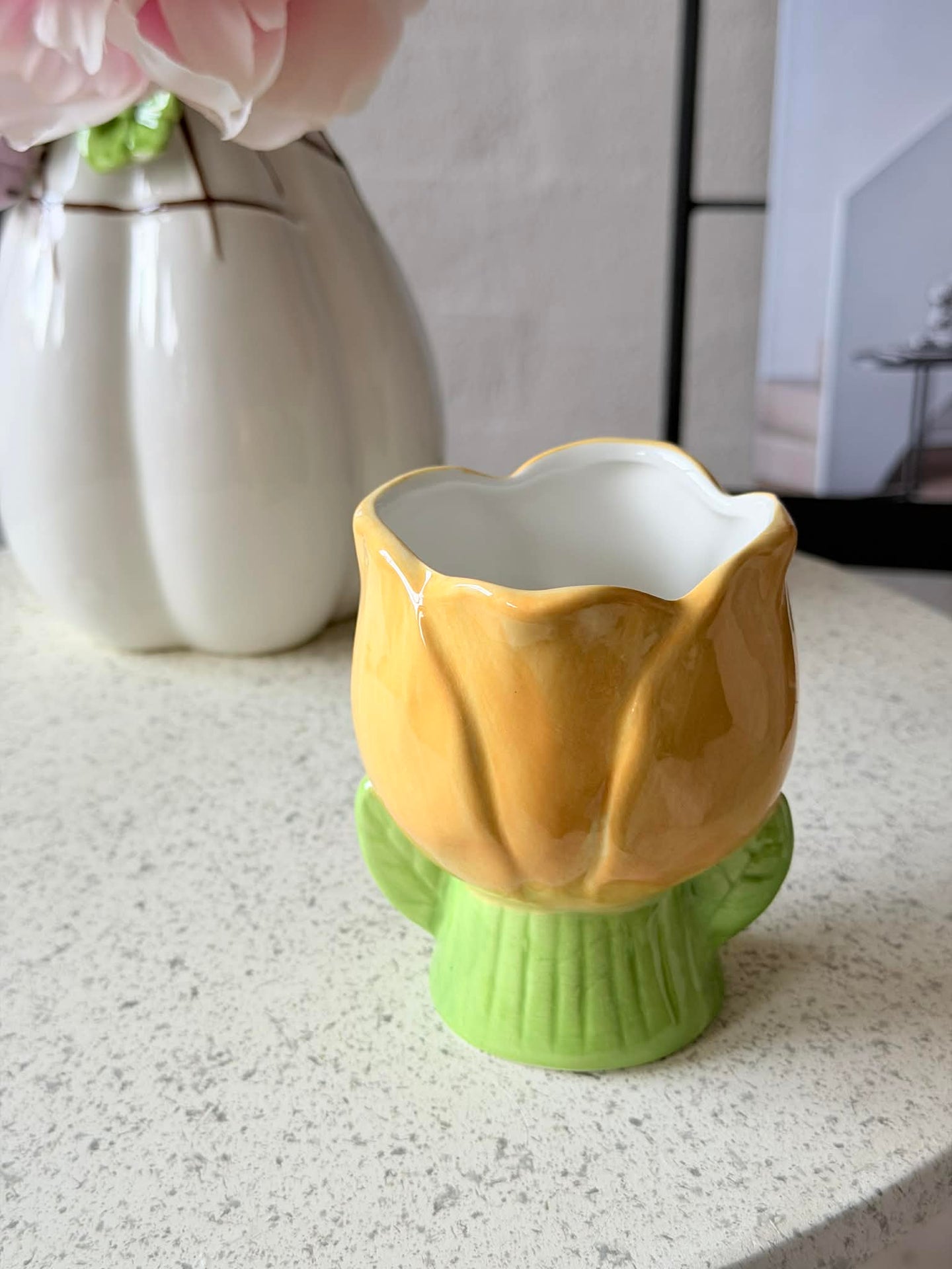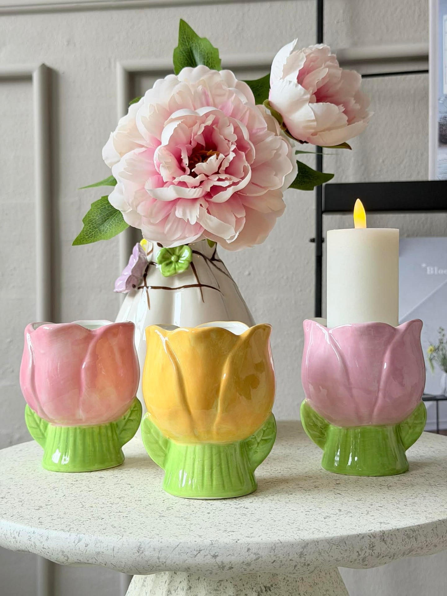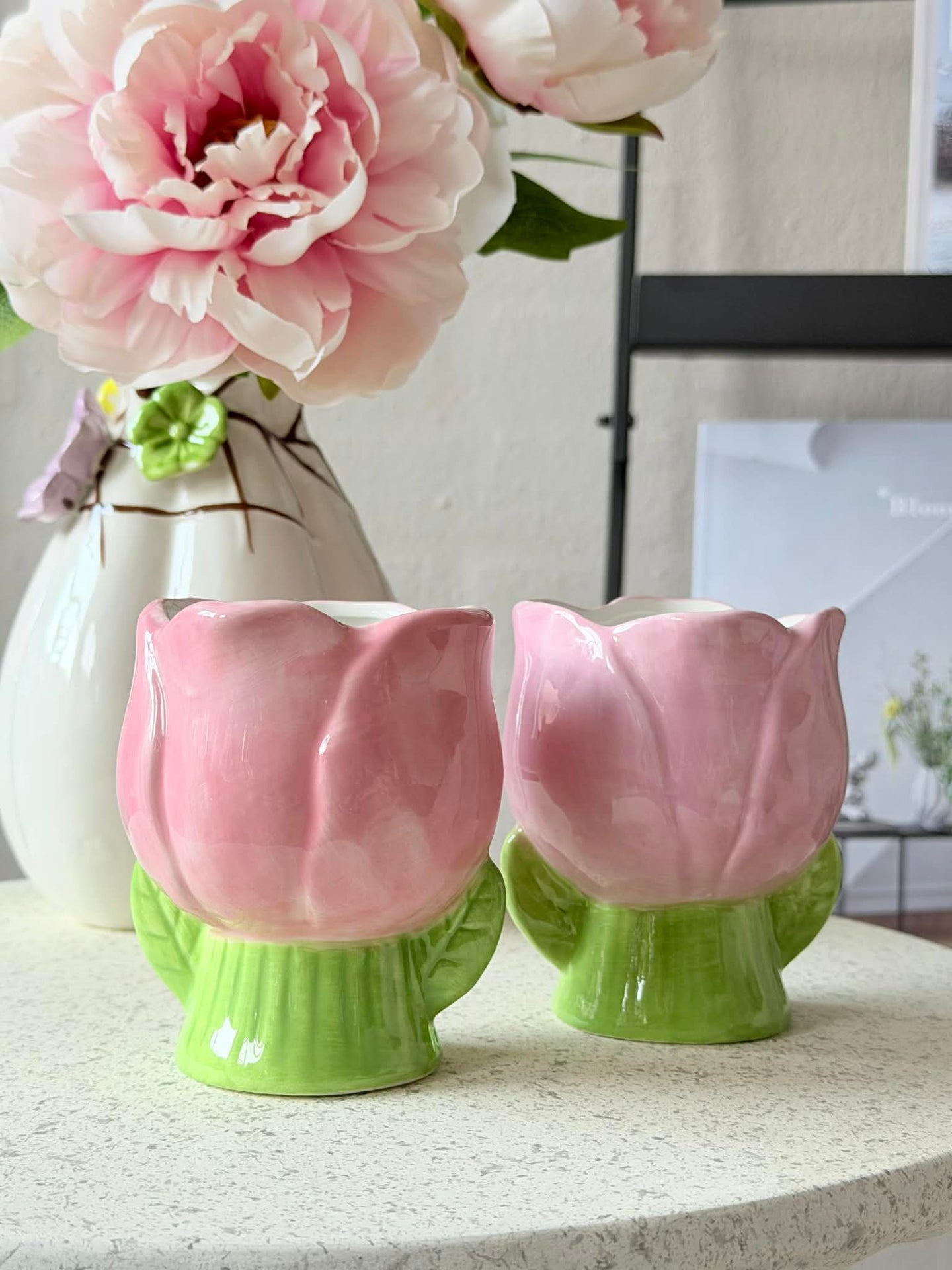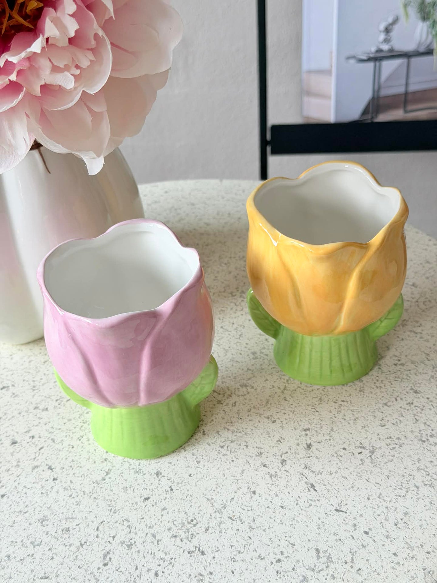 Urtepotten er utført i keramikk og har et tulipaninspirert design som understreker det fine, sesongpregede uttrykket.