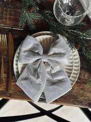 Sløyfe Champagne 23 cm er en dekorativ, ensfarget sløyfe i beige polyester som gir et rolig og elegant uttrykk. Den passer både som gavepynt og som en liten detalj i bord- og festdekorasjoner. På baksiden sitter en ståltråd, slik at sløyfen kan monteres eller henges opp.