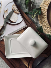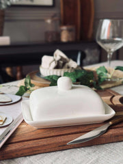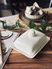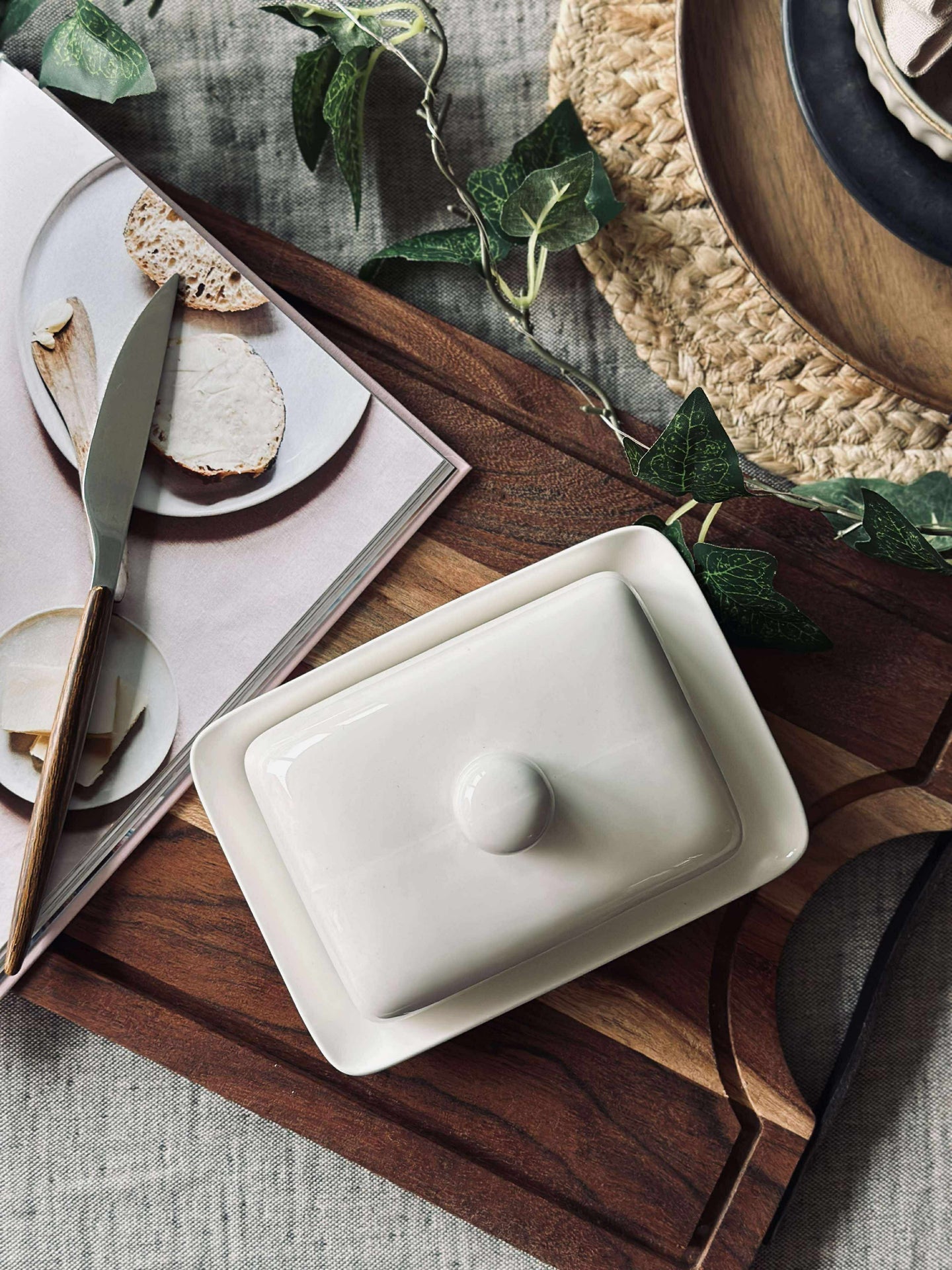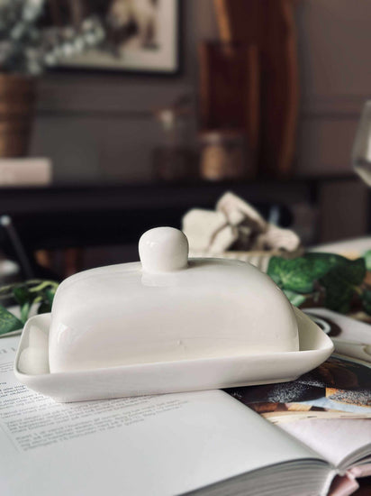 Smørskålen, laget av ekte porselen, gir en følelse av kvalitet og holdbarhet til ditt kjøkken. Porselenets naturlige egenskaper sikrer at smøret holdes friskt og kjølig over lengre tid. Materialet er også lett å rengjøre og tåler daglig bruk uten å miste sin glans. Dette gjør smørskålen til et praktisk og stilfullt valg.