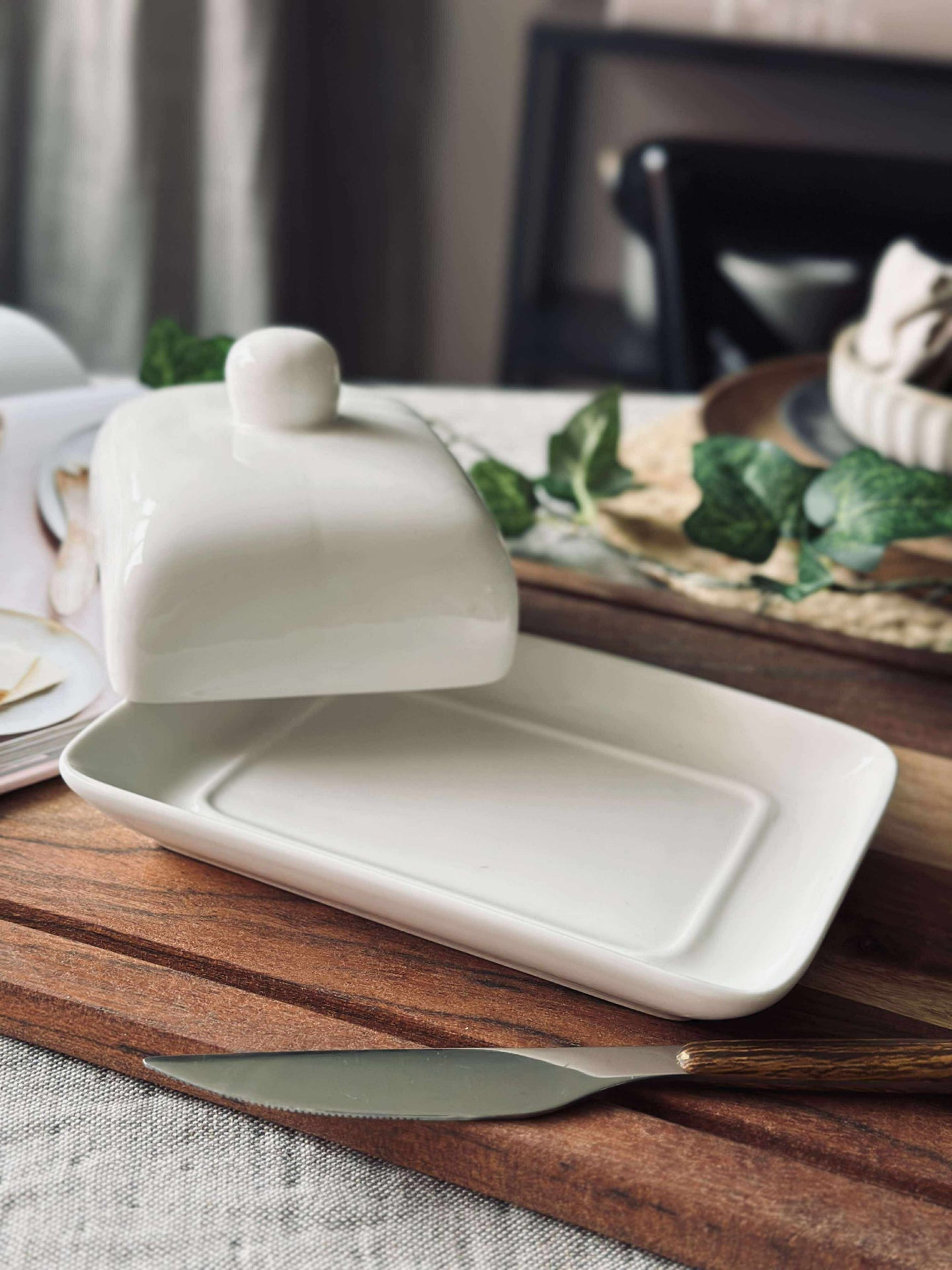 Er du lei av smør som klistrer seg til tallerkenene, eller skåler som er vanskelige å rengjøre? Denne smørskålen i porselen gir en praktisk løsning med sitt enkle design, samtidig som den tåler både oppvaskmaskin og mikrobølgeovn for enkel hverdagsbruk.