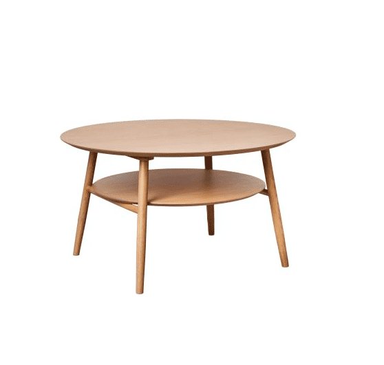 Sofabordet er laget av eik og finer, materialer som gir en varm og naturlig følelse i stuen. Eik er kjent for sin styrke og holdbarhet, noe som sikrer at bordet tåler daglig bruk over tid. Finer gir en jevn og glatt overflate som er lett å vedlikeholde, samtidig som det bevarer det estetiske uttrykket. Kombinasjonen av disse materialene gir en balanse mellom funksjonalitet og stil.