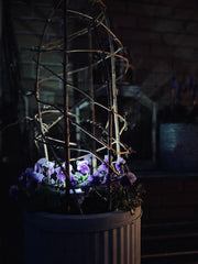 - Lades opp i sollys og lyser automatisk når det blir mørkt